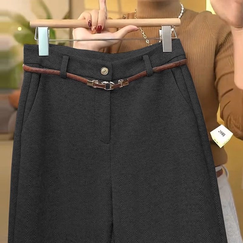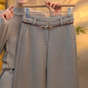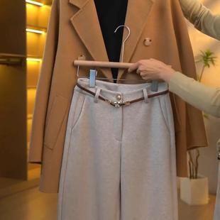 毛呢阔腿裤 醋酸羊毛直筒裤 加绒窄版 高腰休闲糯米裤 女秋冬2025新款