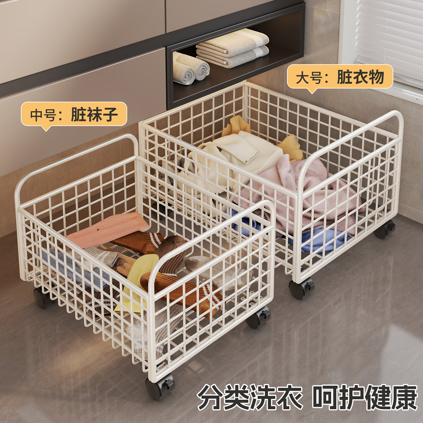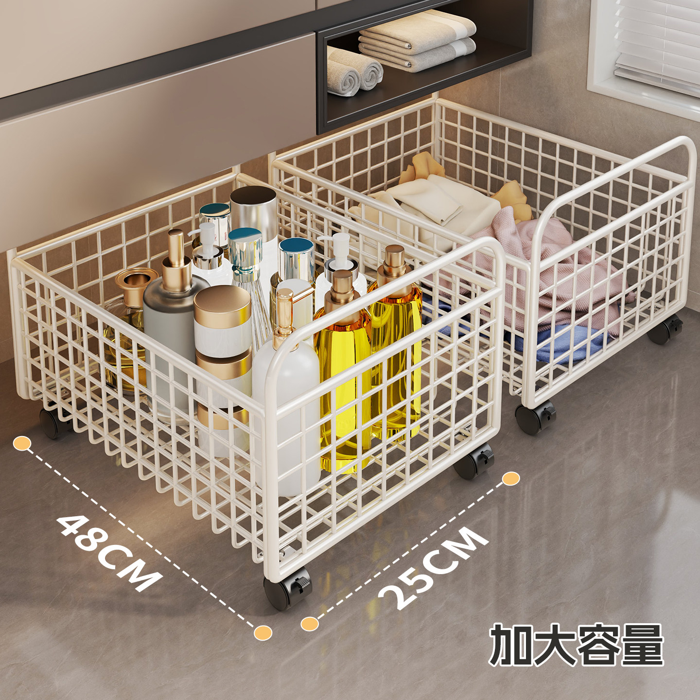 浴室柜下可移动脏衣篮洗漱台脏衣服收纳筐卫生间带轮小推车置物架