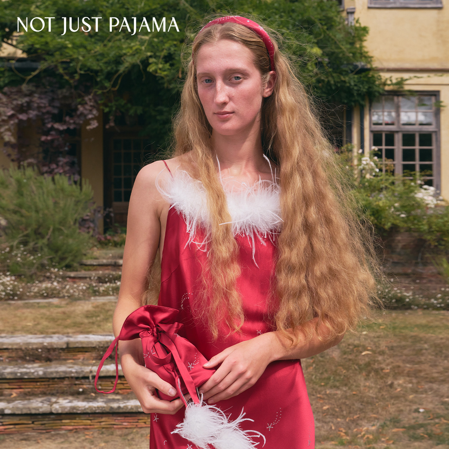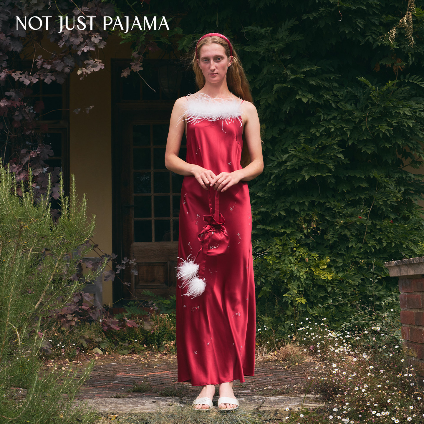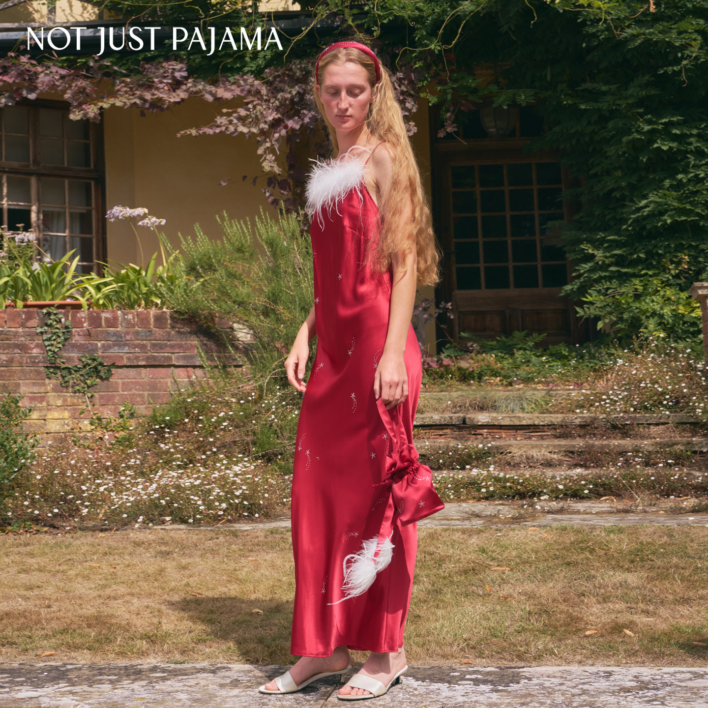VEGA织女星斜裁烫钻羽毛真丝吊带裙桑蚕丝连衣裙 Pajama Not Just