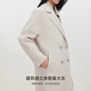 毛呢大衣女 含绵羊毛双面呢外套中长款 绫致ONLY2025秋季 新款
