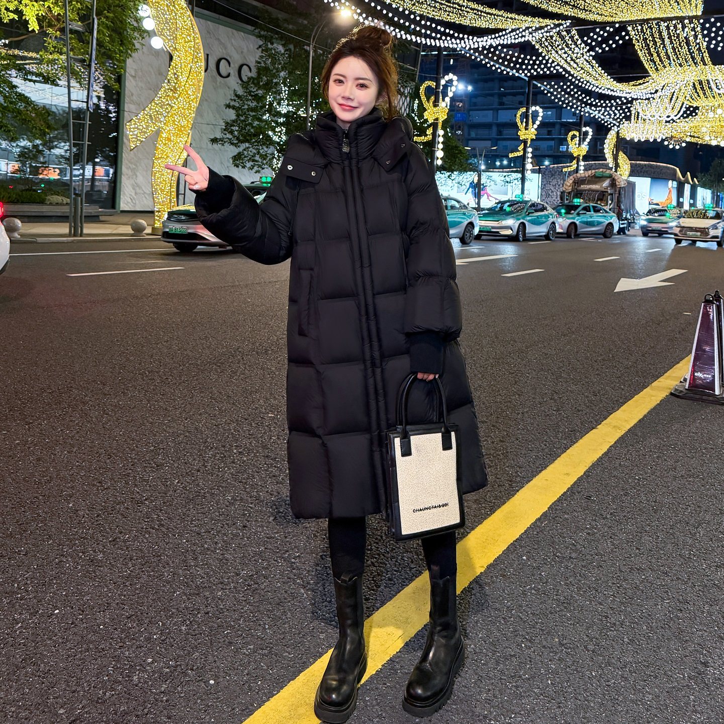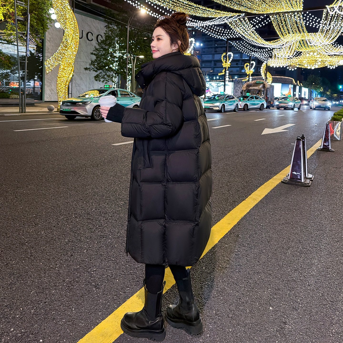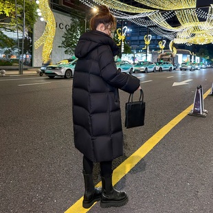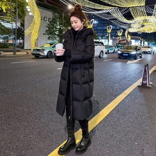 休闲95白鸭绒加厚保暖过膝外套 2025新款 高端黑色长款 羽绒服女冬季
