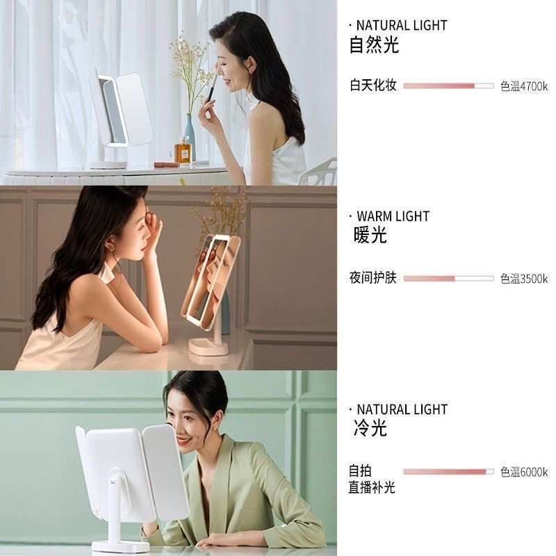 化妆镜带灯led台式 桌面可立卧室镜子智能美妆镜补光网红轻奢高级
