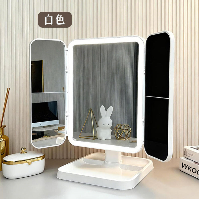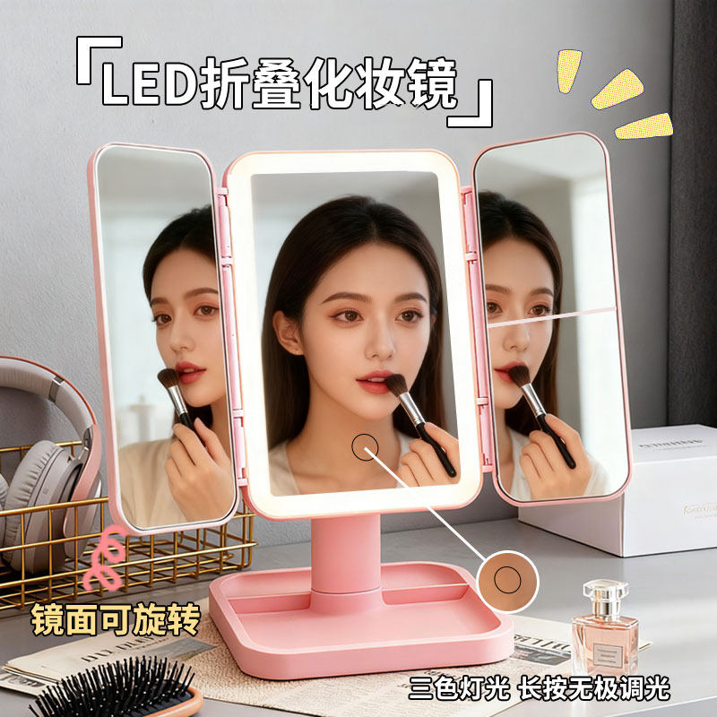 led化妆镜带灯折叠梳妆镜台式 高清学生宿舍家用桌面随身便携镜子