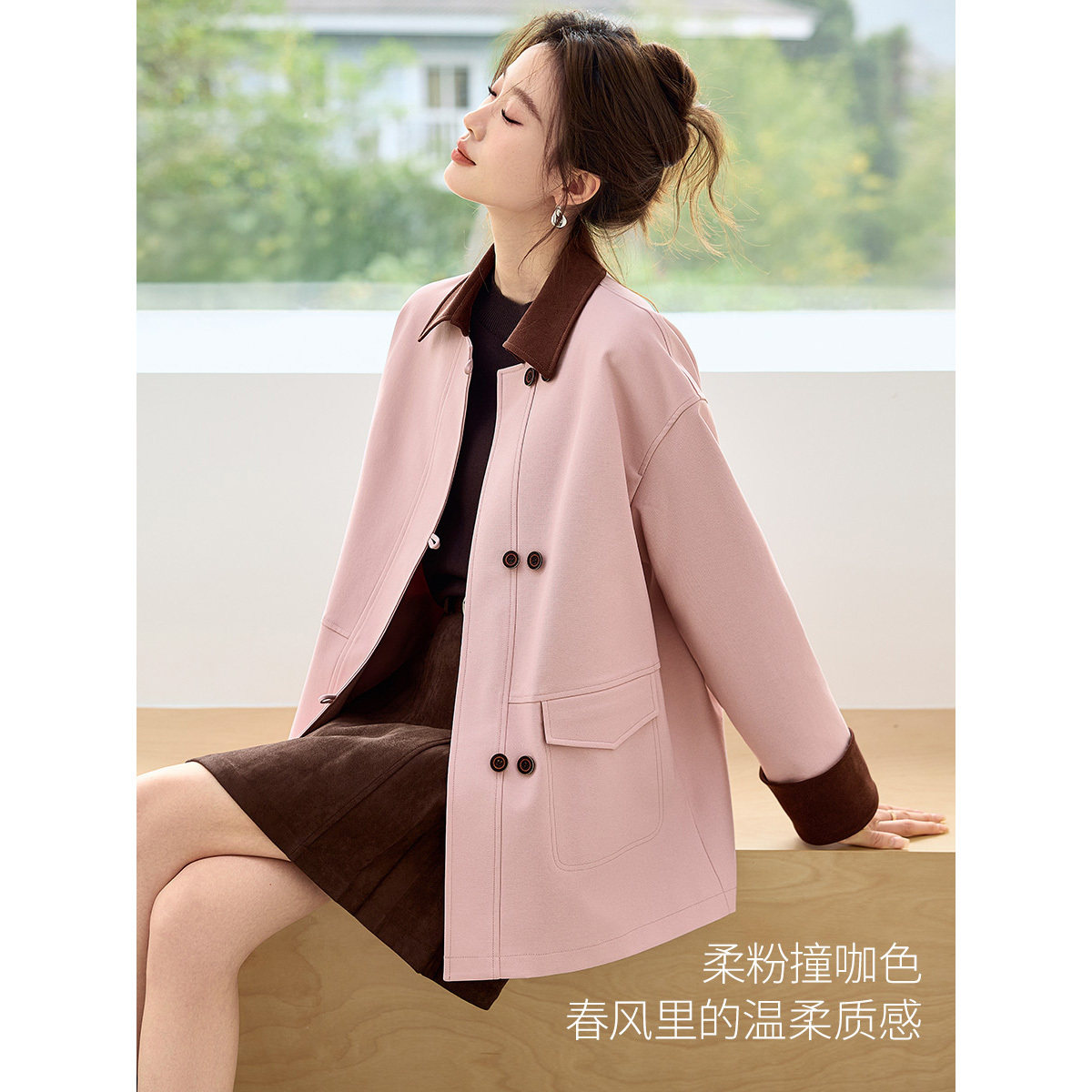 沫晗依美2026流行巨好看 外套粉色风衣女小个子 外套高级感减龄款