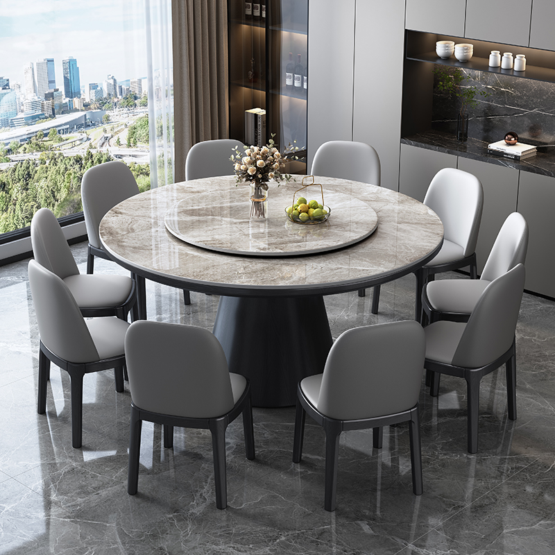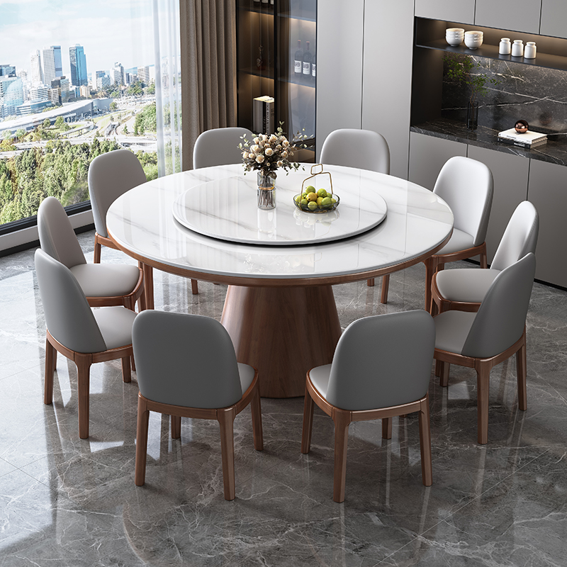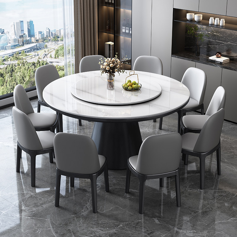 实木岩板圆桌现代简约家用饭桌带转盘轻奢圆形餐桌十人酒店大圆桌