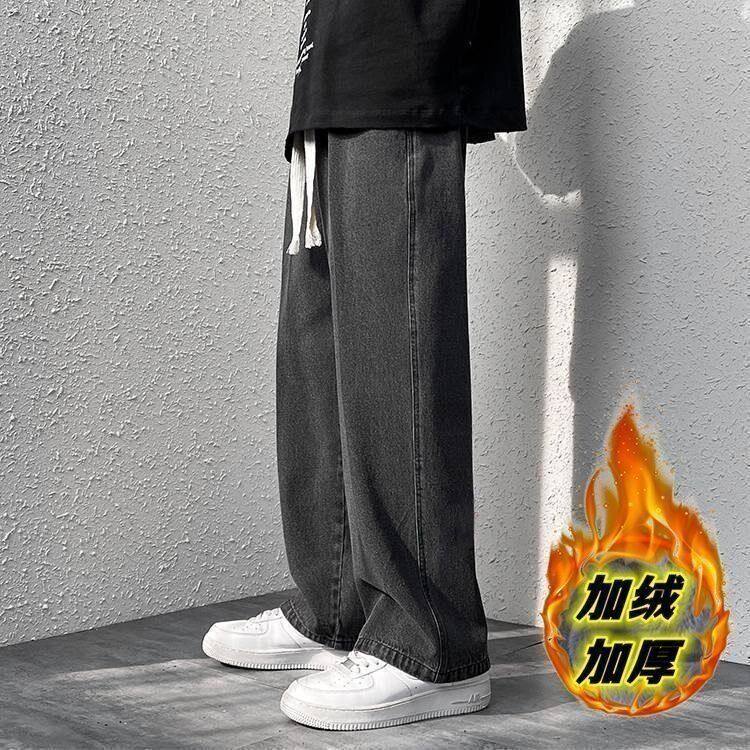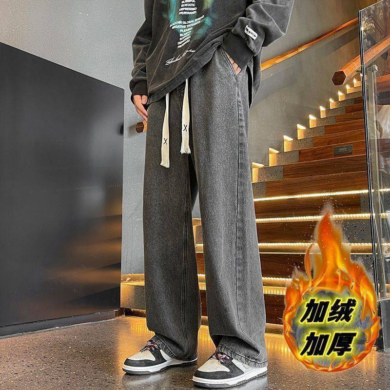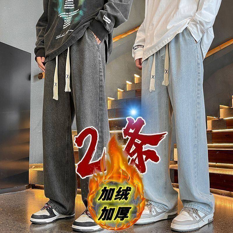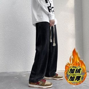 子直筒宽松秋冬加绒男士 休闲裤 牛仔裤 男冬季 2025新款 阔腿美式 男式