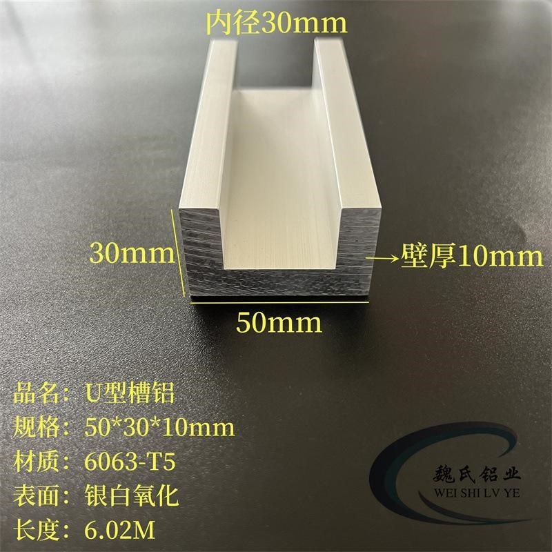 U型铝50 10mm内径30mm氧化槽铝型材6063铝导轨滑轨工业C型铝材
