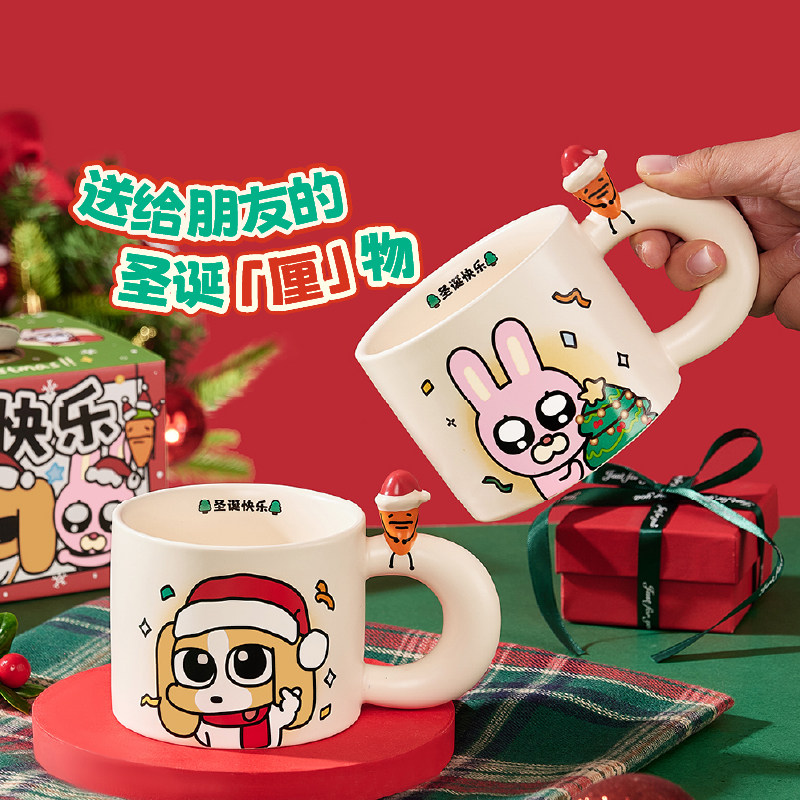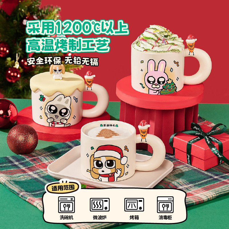 舍里可爱陶瓷马克杯带盖高颜值喝水杯设计感家用咖啡杯生日礼物女