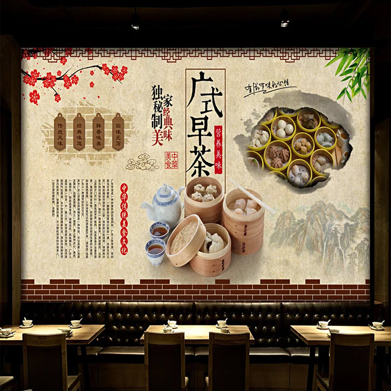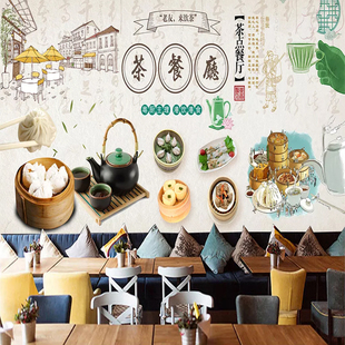 港式 点心背景墙纸壁纸 茶餐厅早点酒楼饭店墙布壁画 早茶粤式 广式
