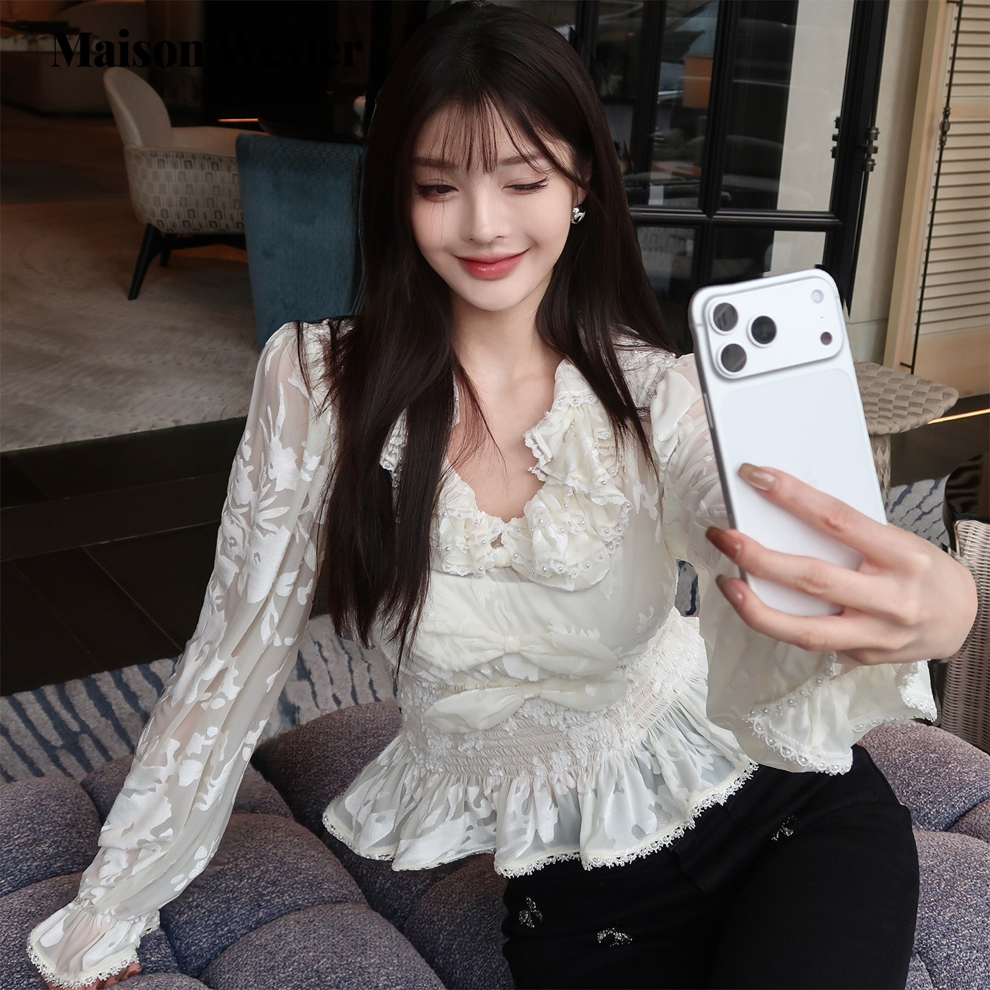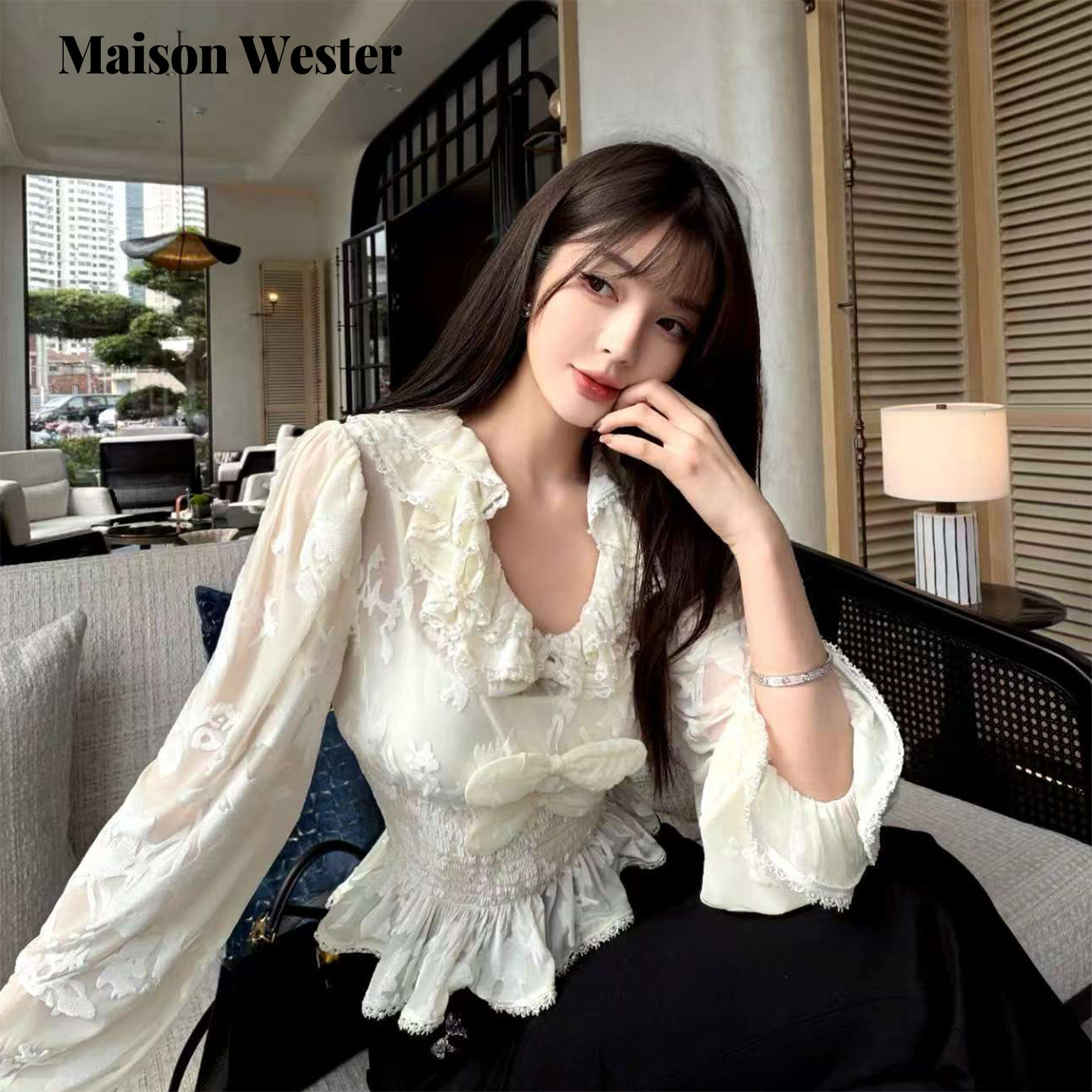 千金风蝴蝶结蕾丝上衣刺绣收腰衬衫 新品 Wester2025年冬季 Maison