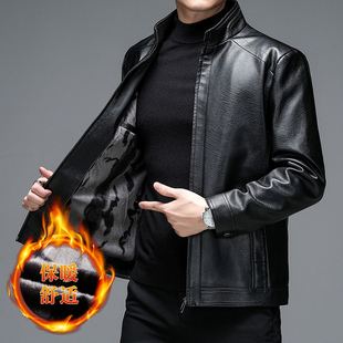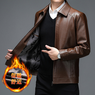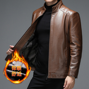 利郎男装 中年翻领加绒保暖商务休闲皮夹克外套 高端真皮皮衣秋冬季