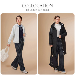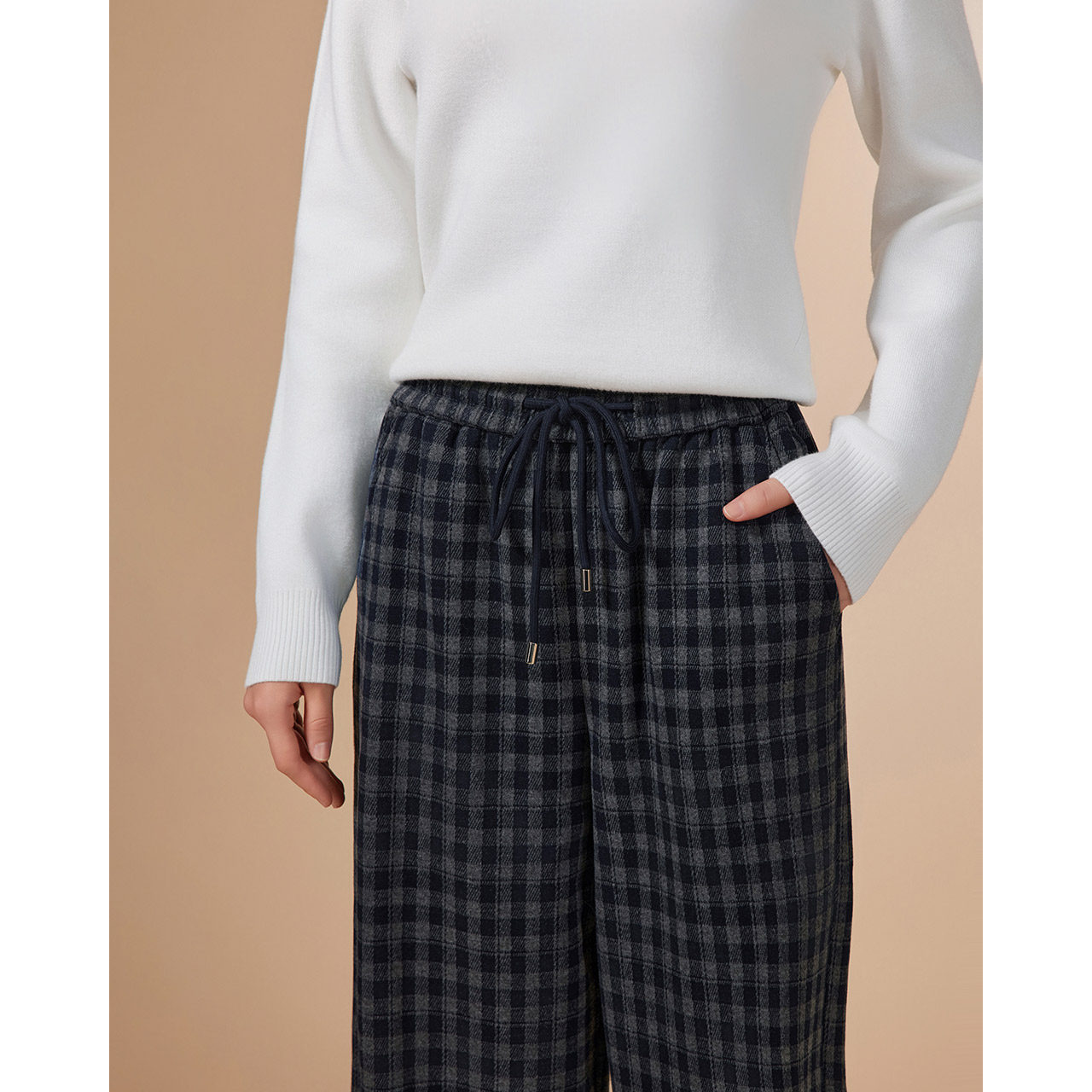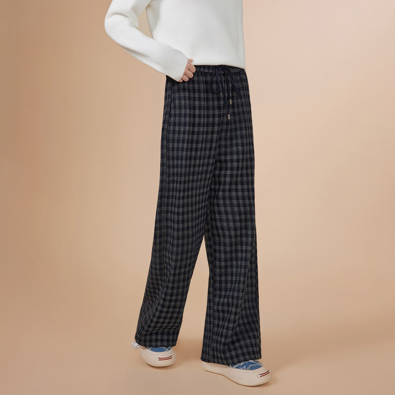爱依服裤 休闲运动风加绒保暖格子阔腿裤 子2025冬季 韩版 新款 IEF