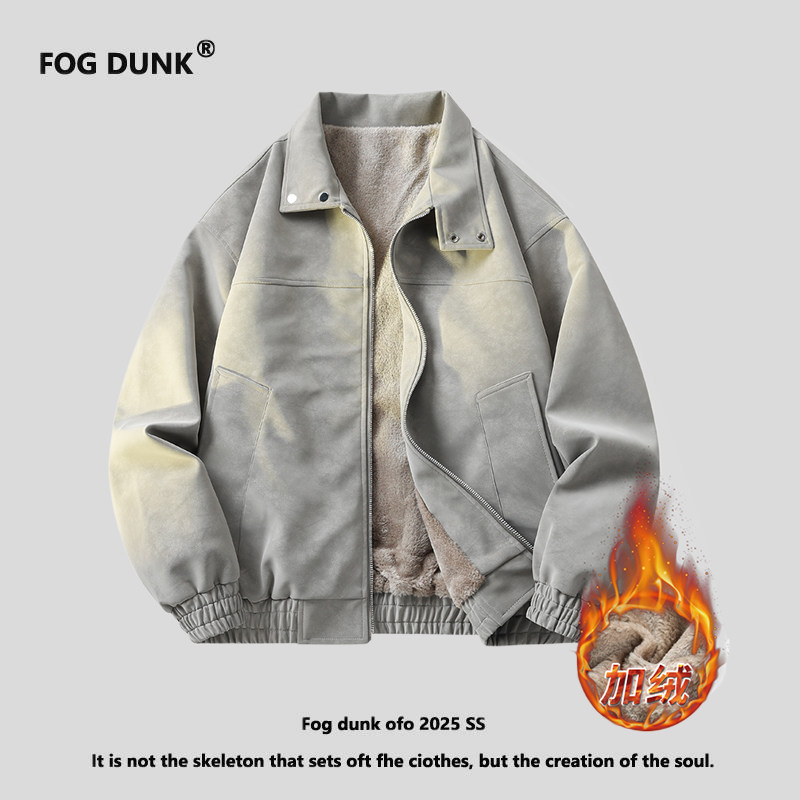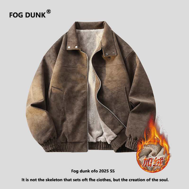 夹克潮 阿美咔叽工装 美式 复古水洗蓝色加绒牛仔外套男2025秋冬新款