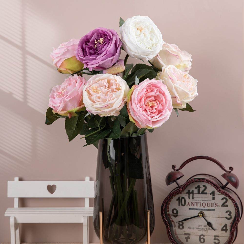 原创高质感婚礼派对餐桌桌花仿真花玫红暗黑布置摆件婚房装 饰假花