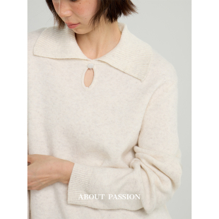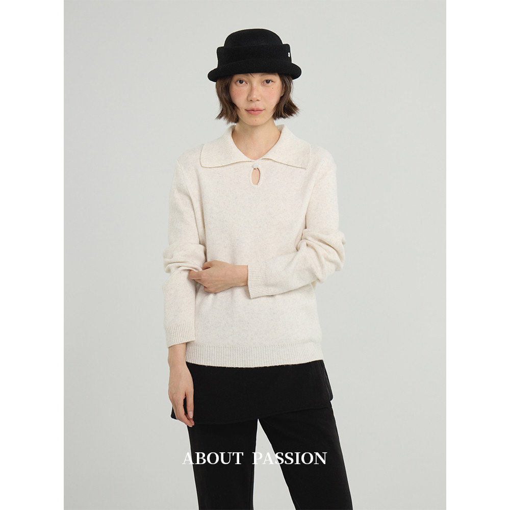 高级感镂空系扣翻领毛衣冬季 About 法式 软糯针织上衣 Passion