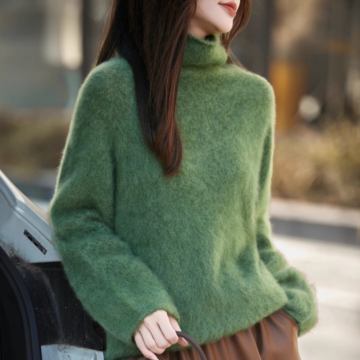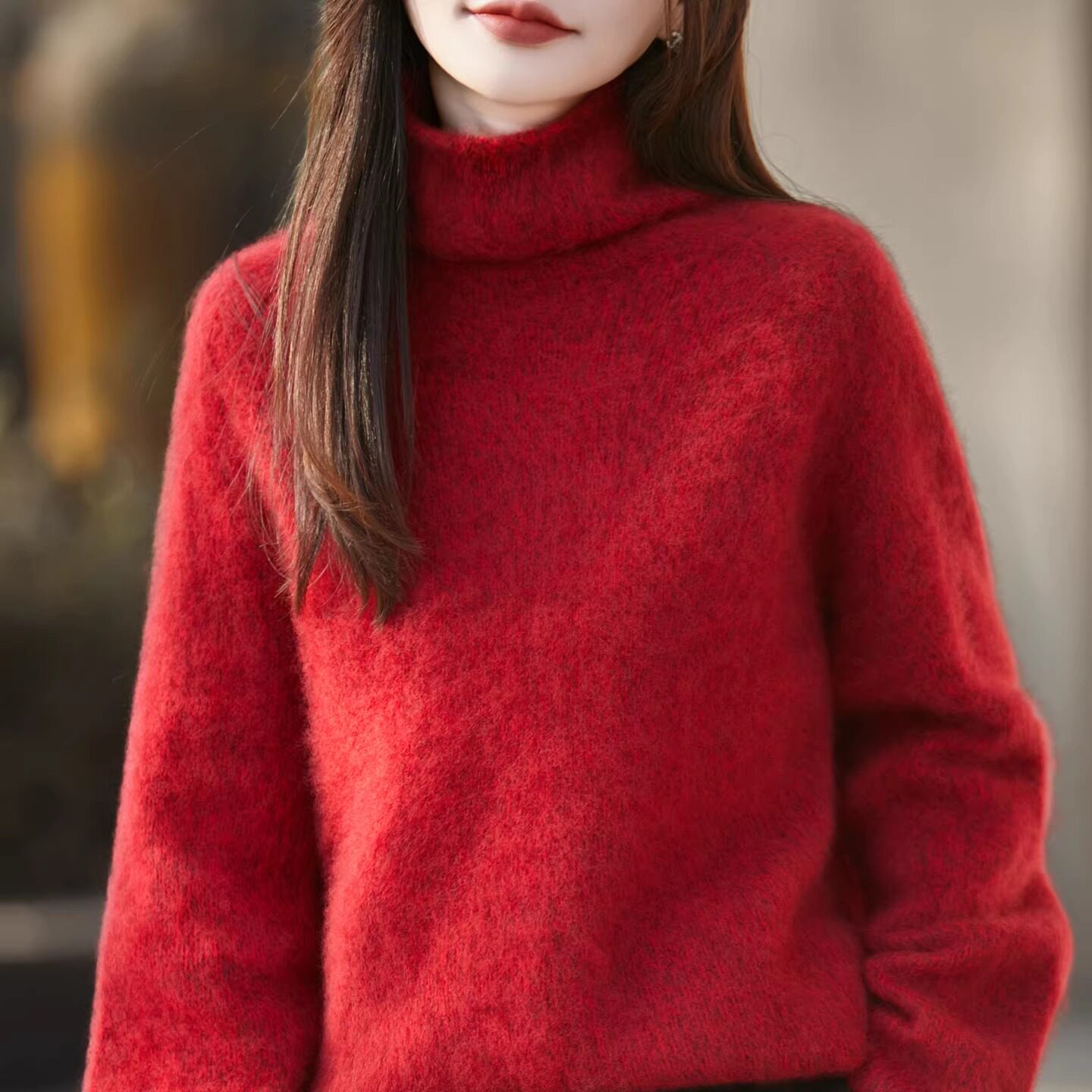 秋冬慵懒风806 女针织落肩袖 羊绒拉毛堆堆领高领厚款 百搭网红长袖