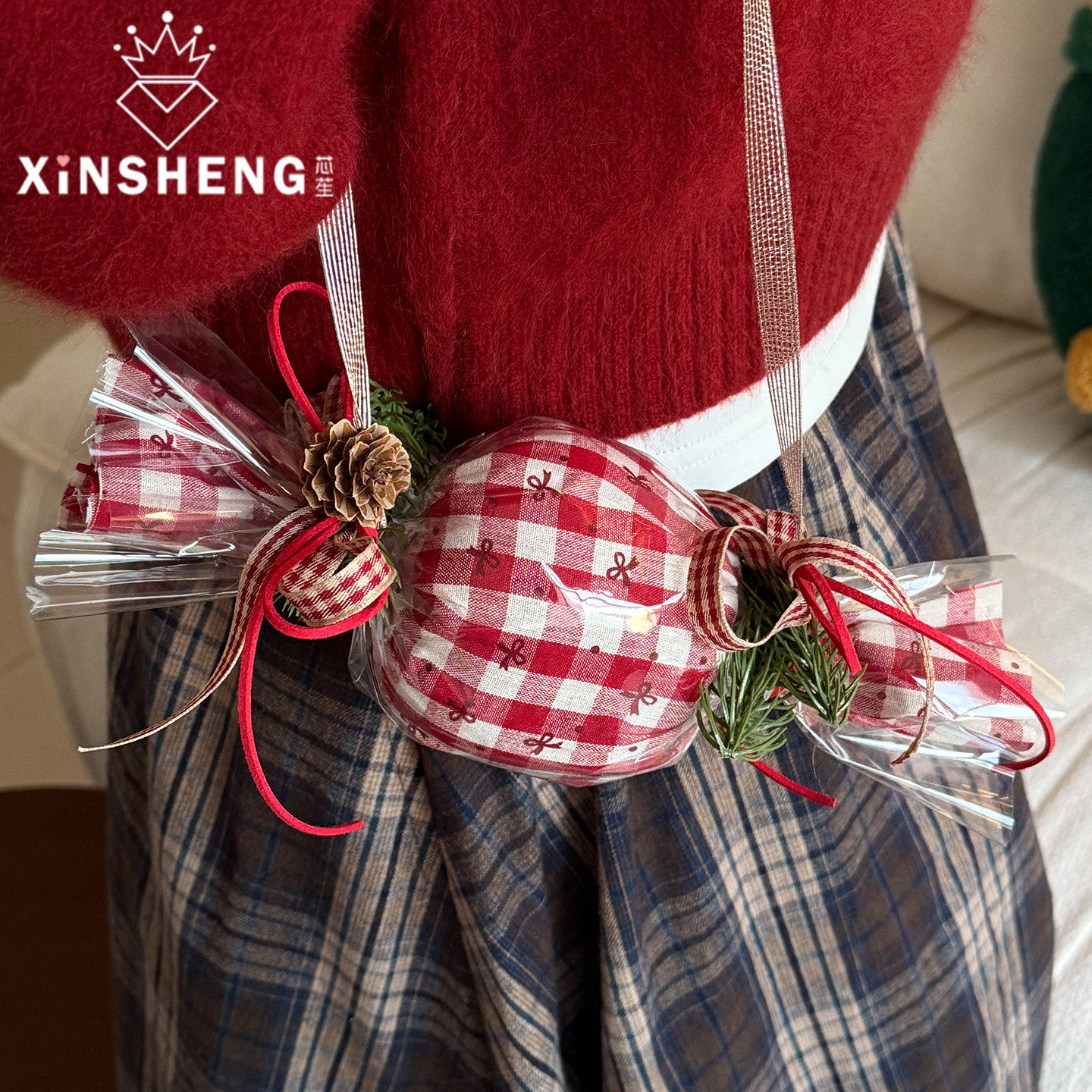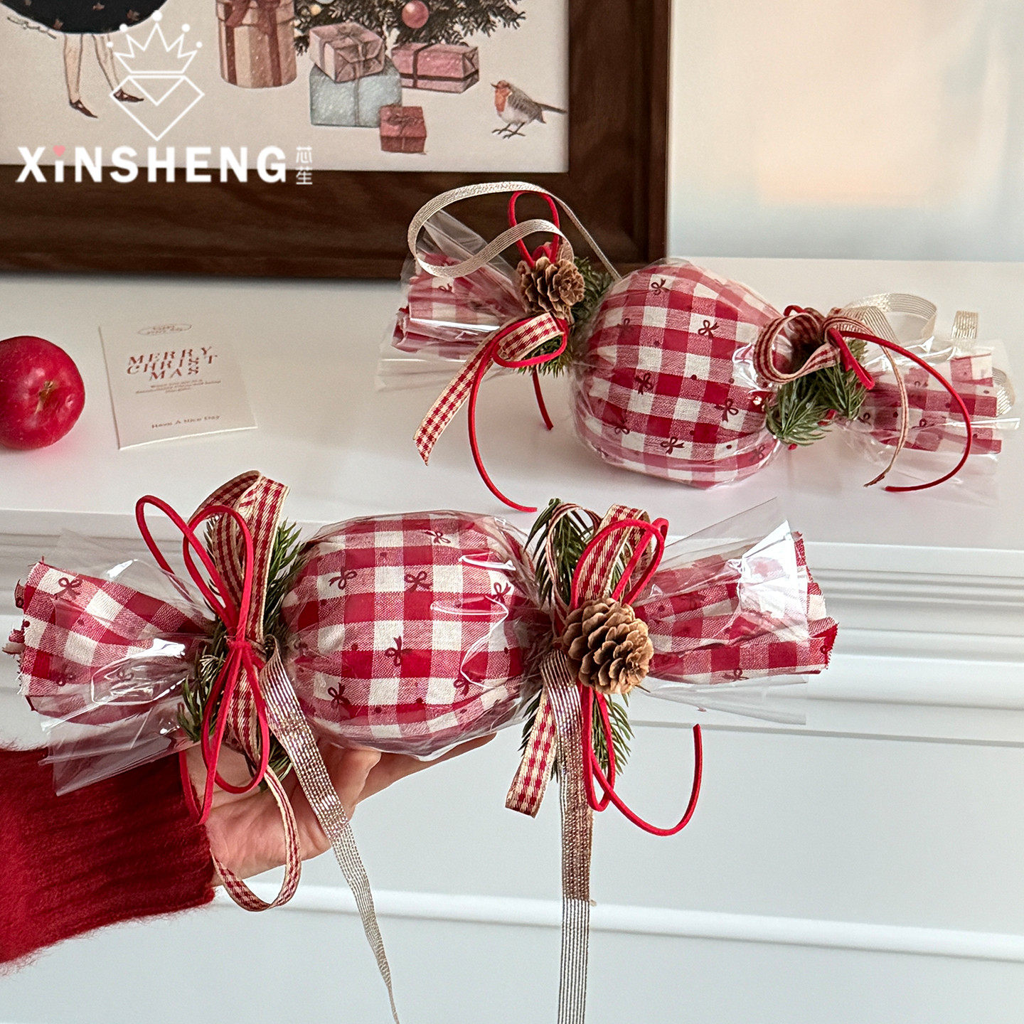 格子布料糖果手拎包节日礼物diy花艺包装 芯苼 资材 圣诞节新品
