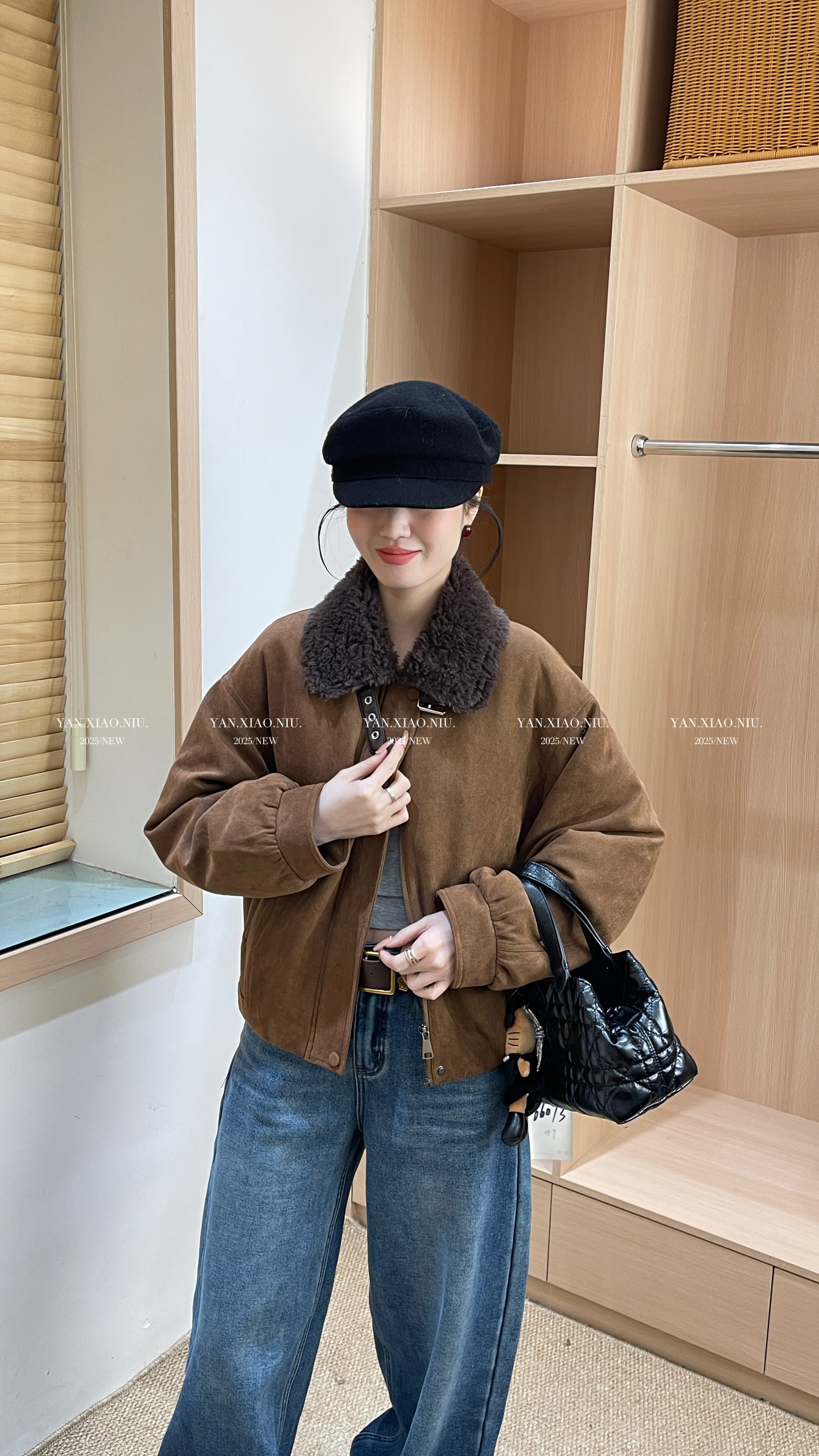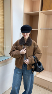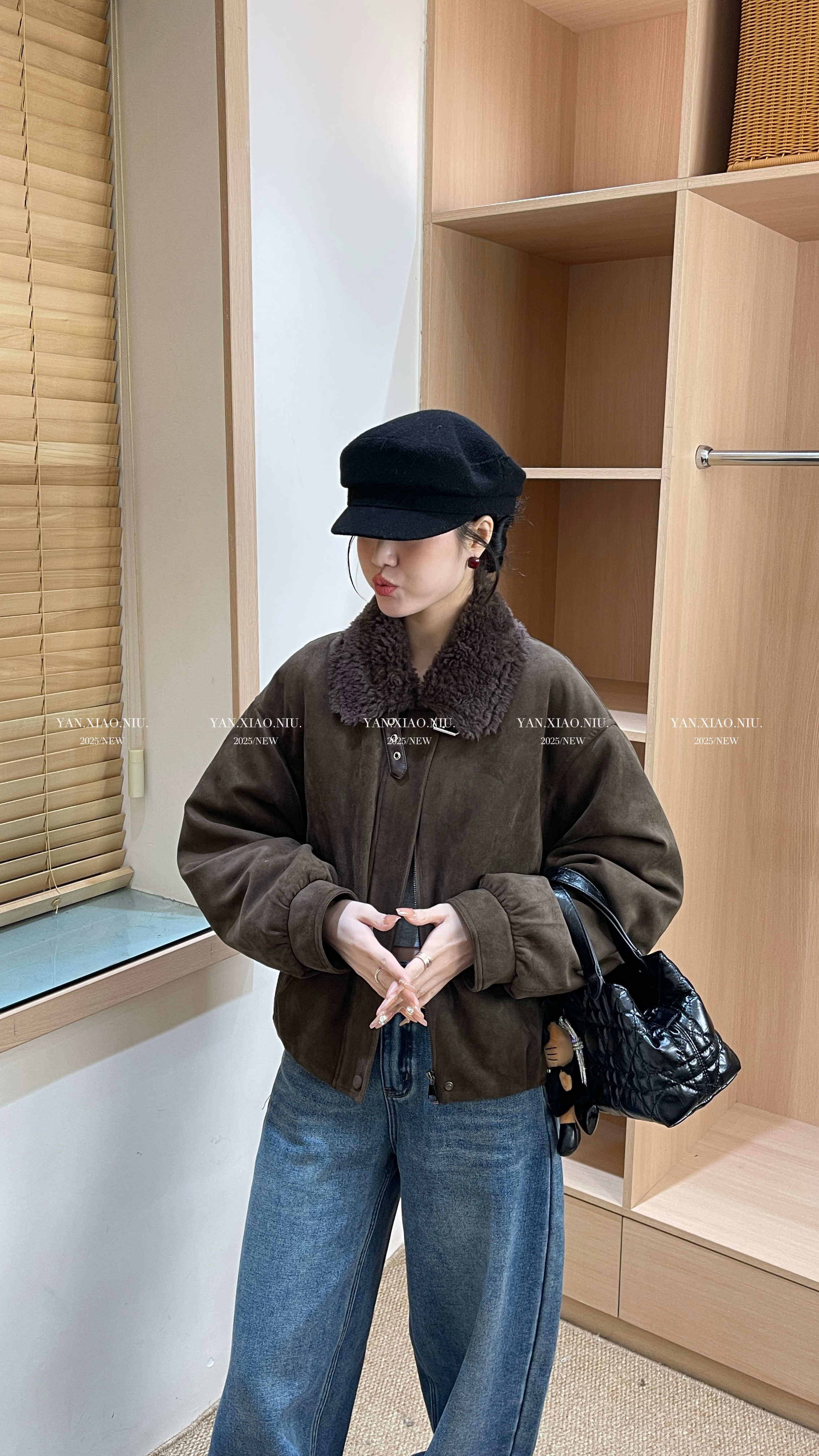 气质百搭宽松显瘦翻领羊羔毛内胆羽绒保暖外套 韩版 27681冬季 新款
