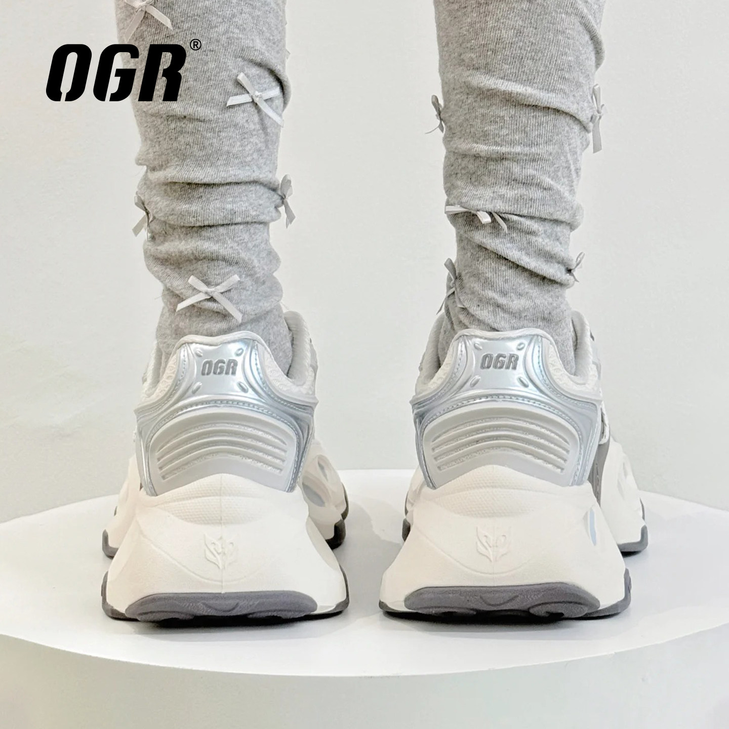 女2025厚底增高 骆驼银月2代秋冬加绒银色老爹鞋 迪丽热巴同款