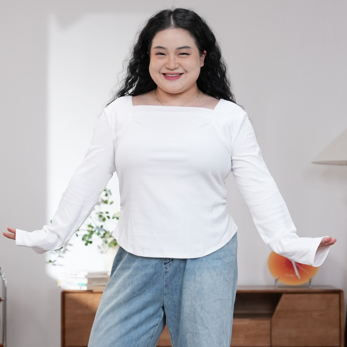 胖MM磨毛方领收腰打底衫 福饮沸别 大码 冬季 2636 秋水伊人