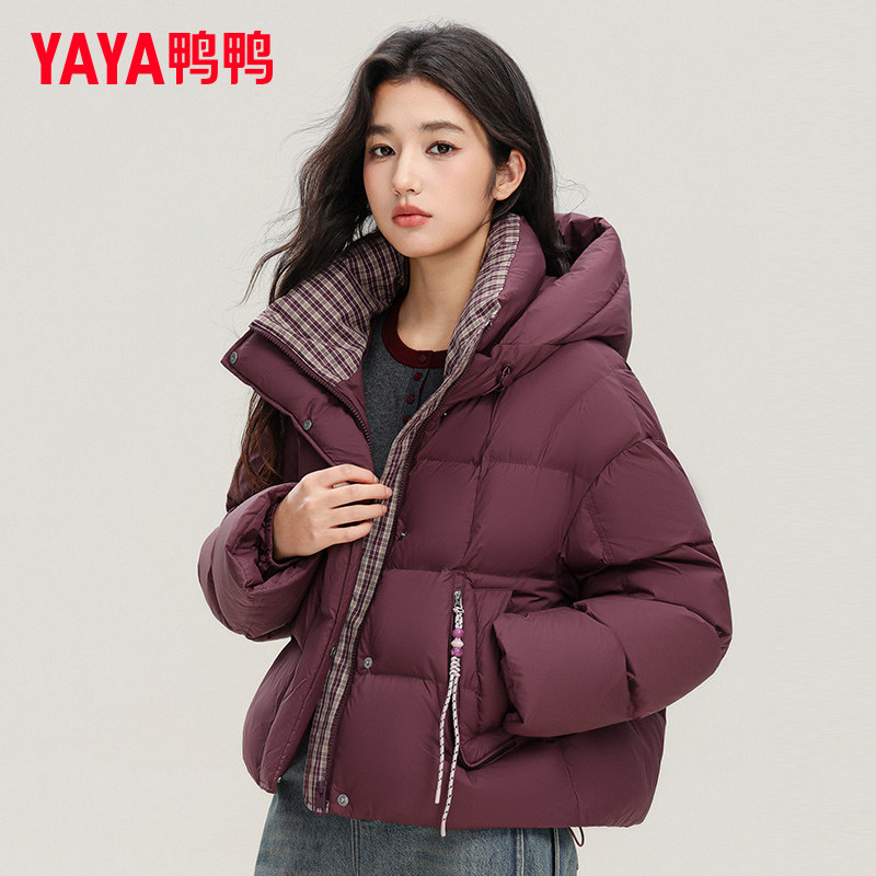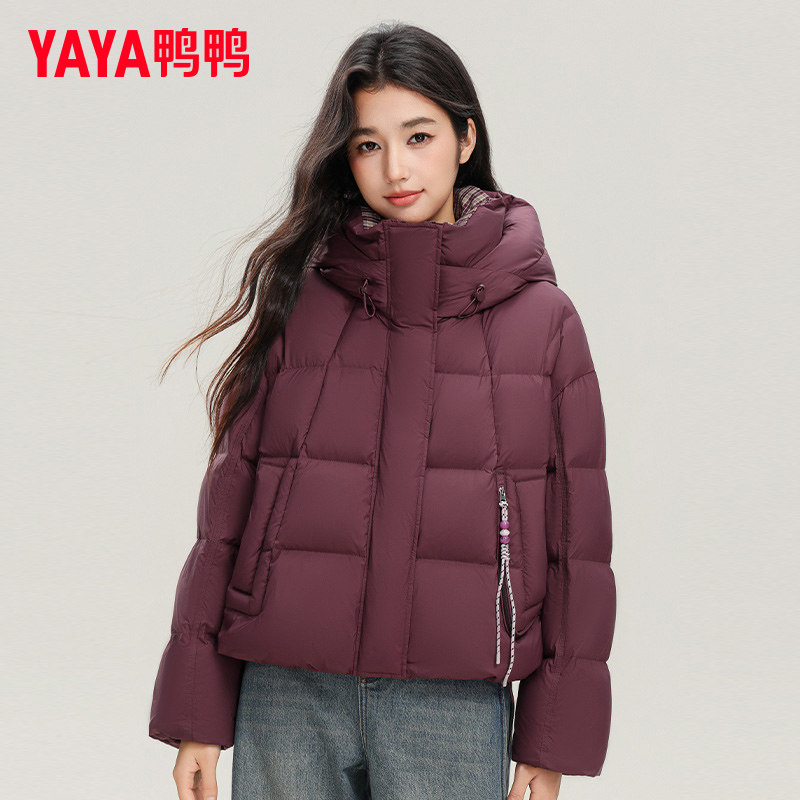 加厚连帽宽松保暖鸭绒外套Z 短款 鸭鸭滑雪羽绒服女士2024冬季 反季