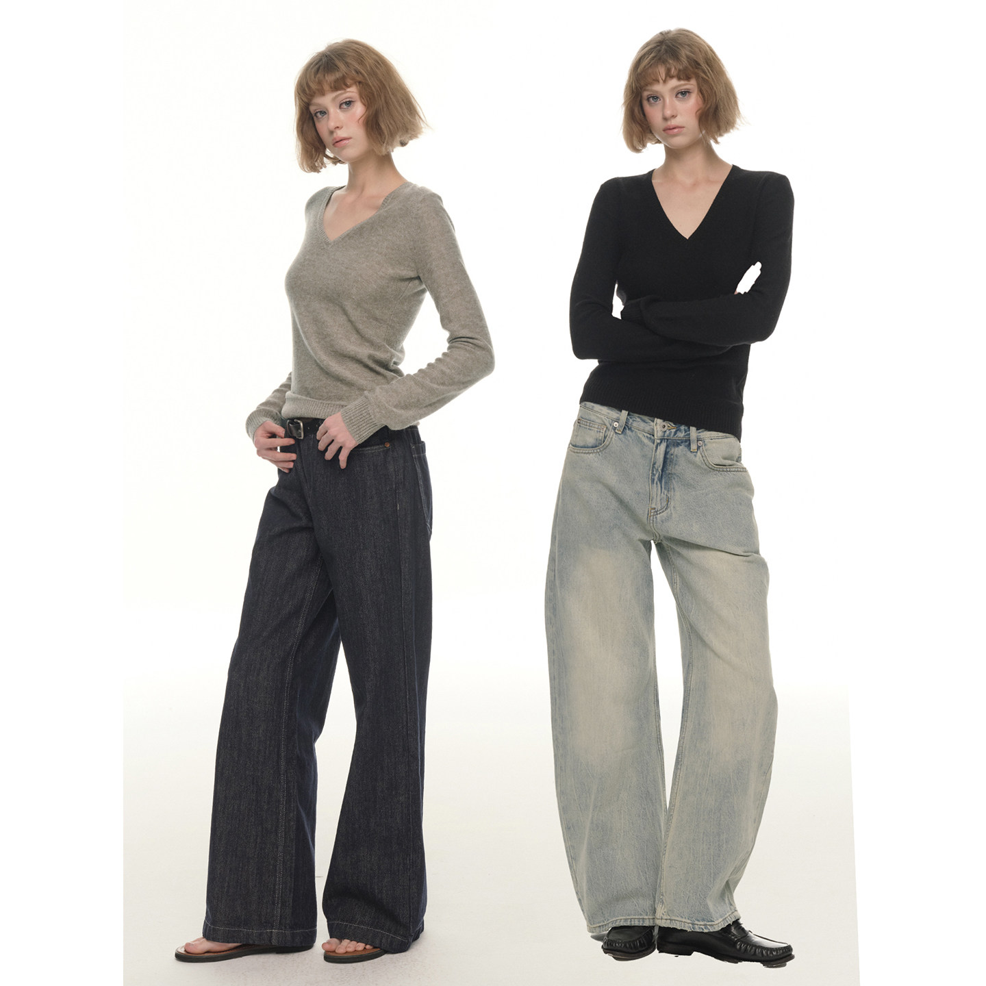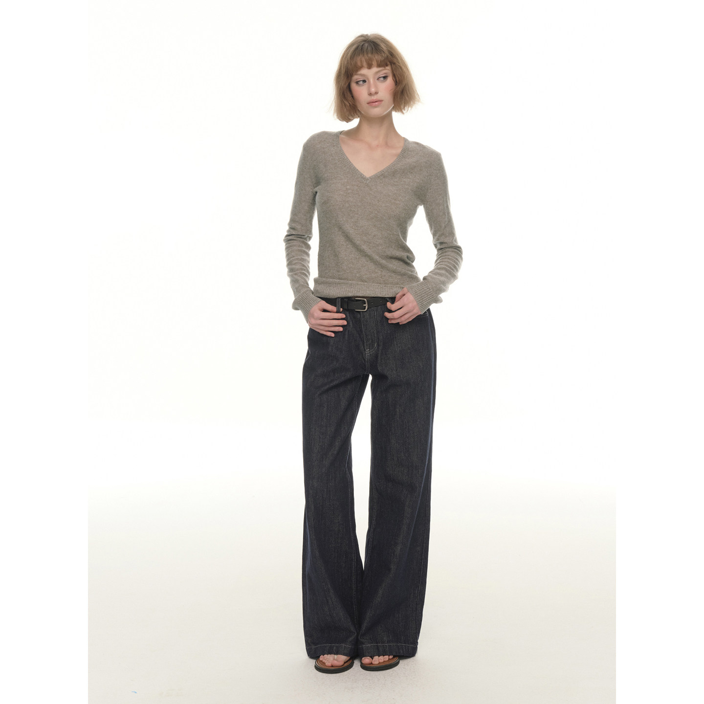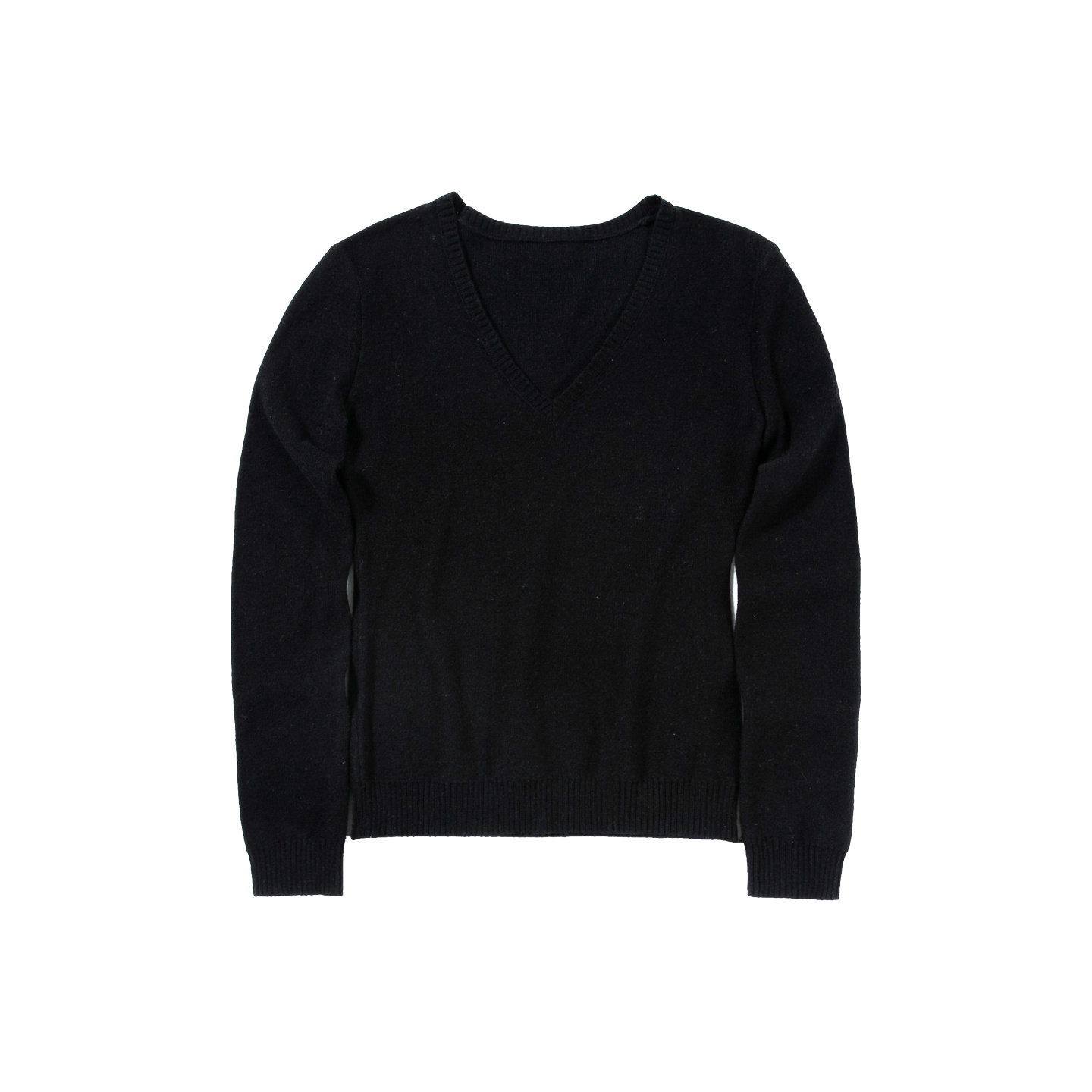 黑色气质长袖 百搭打底衫 上衣 女秋冬修身 UNRETRO羊毛混纺V领针织衫
