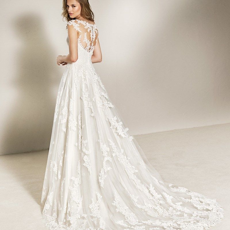 2024新款 新娘仙 简约蕾丝V领婚纱拖尾公主显瘦出门纱森系婚纱法式