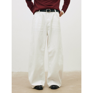 MADE 小弯刀白牛休闲牛仔长裤 26SS 定制小皮牌 立体压褶猫须