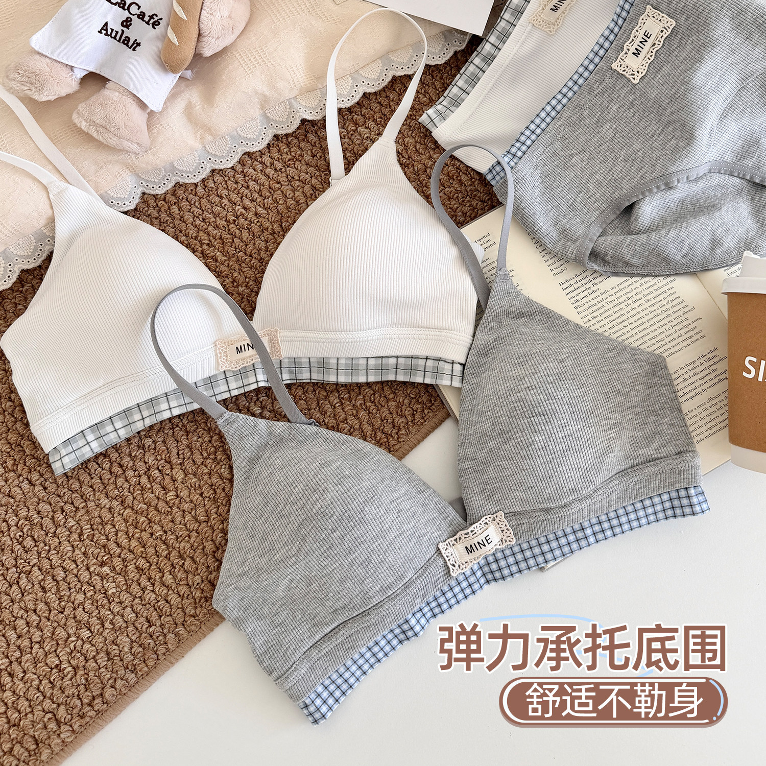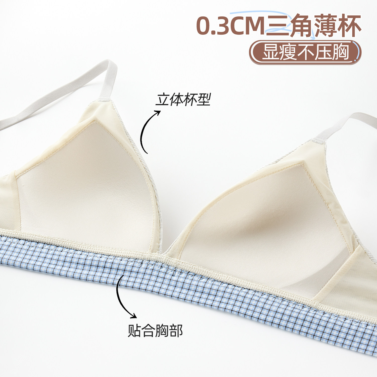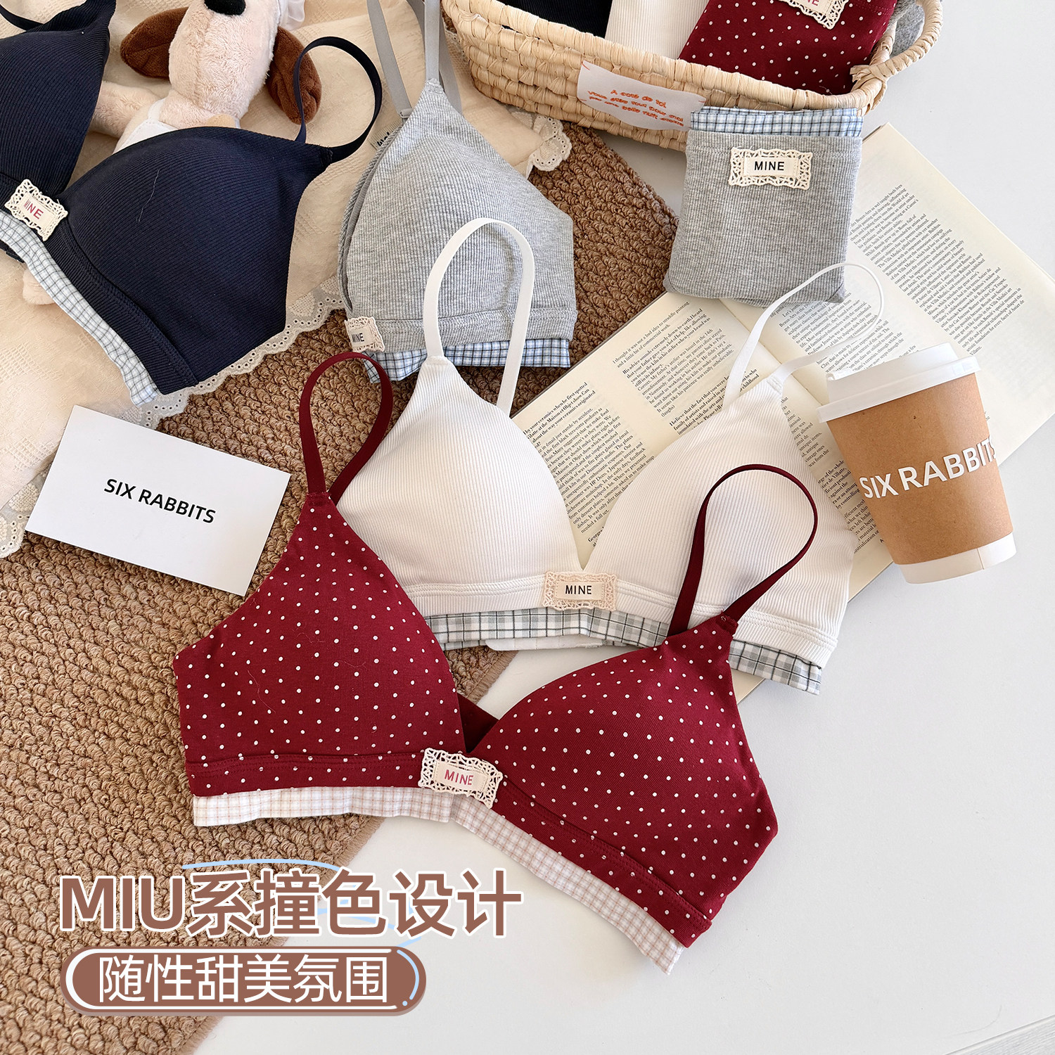 六只兔子三角杯内衣女薄款 深v领胸罩无钢圈A类面料甜美文胸套装