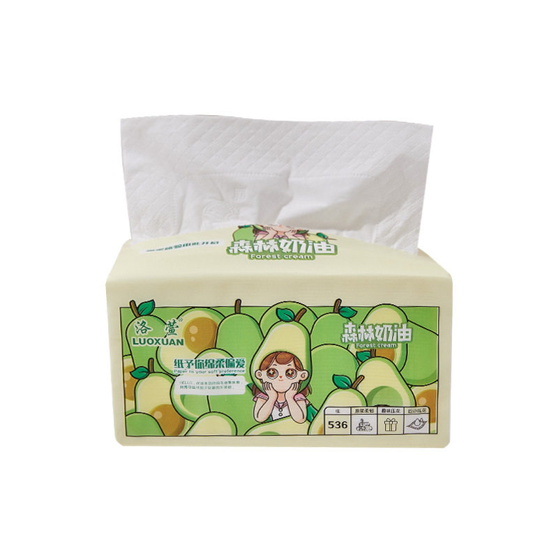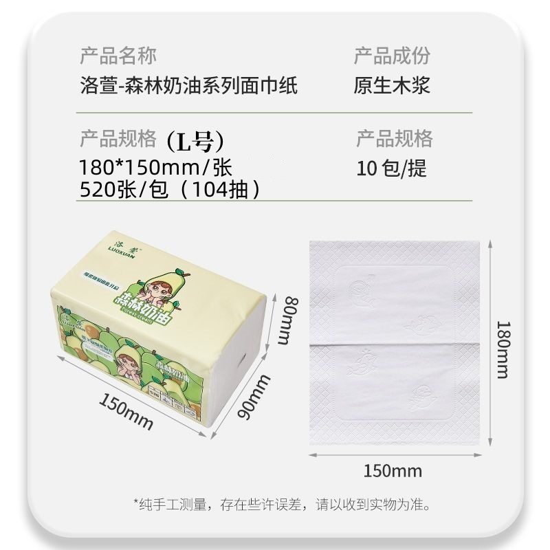 洛萱抽纸纸巾森林奶油520张10包家用大号面巾纸加厚餐巾纸7055