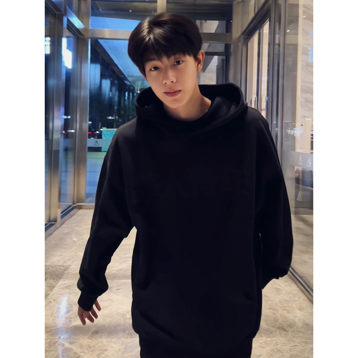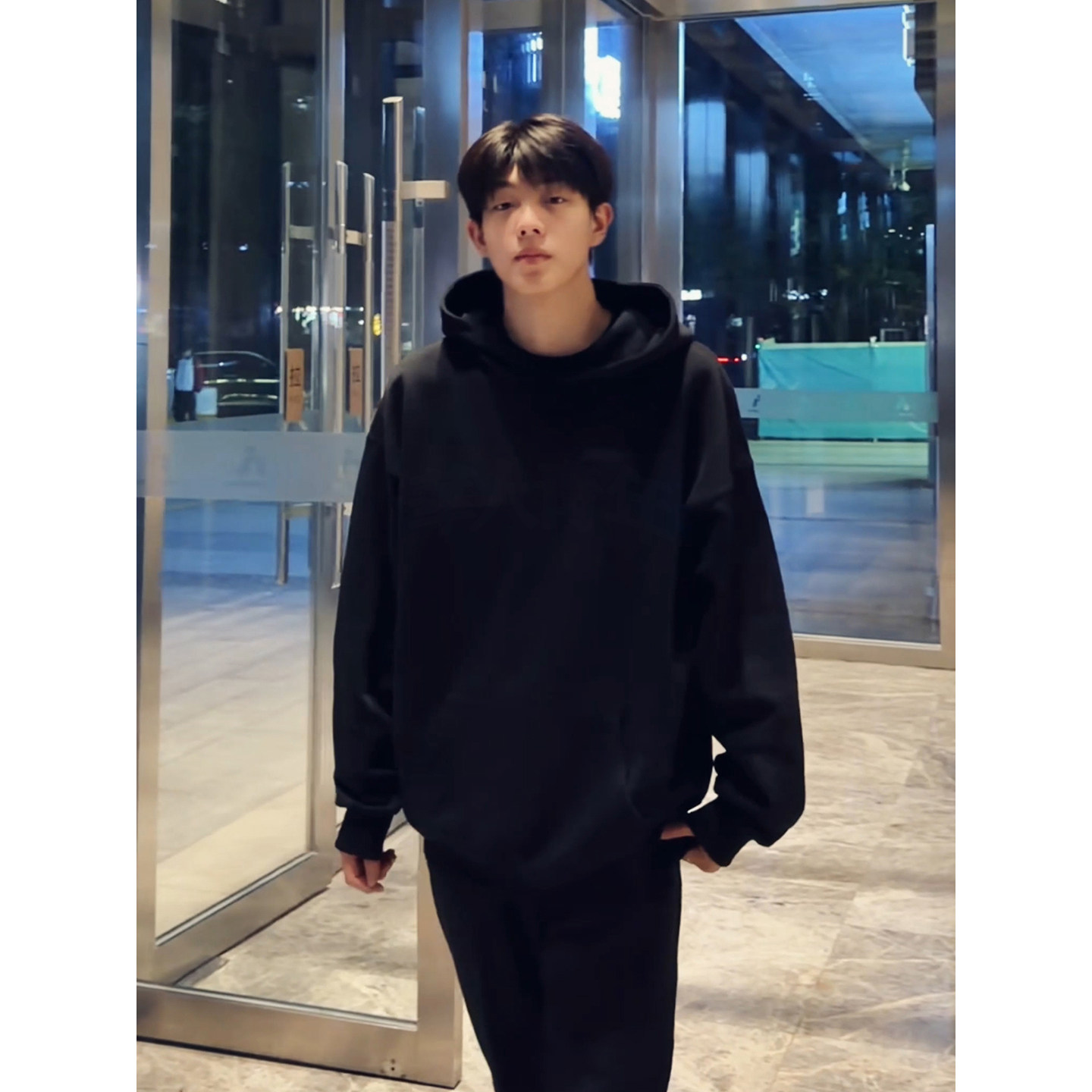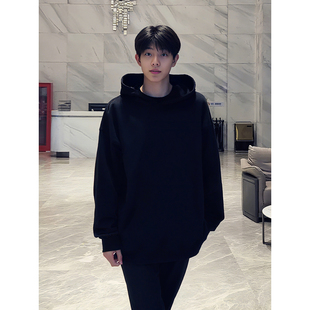 无帽宽松潮男款 男士 秋冬加绒黑色上衣A 长袖 回力卫衣男青少年秋季