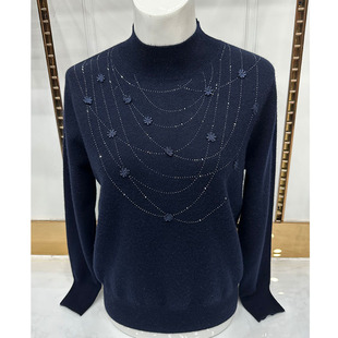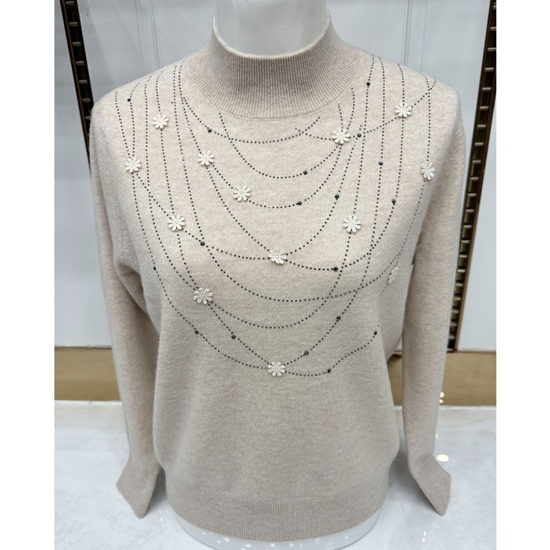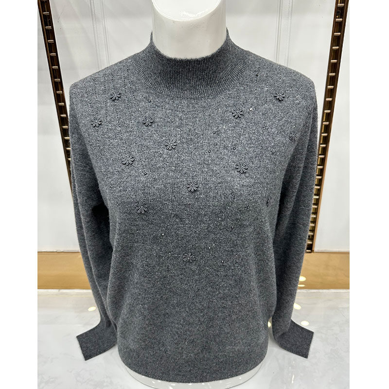 加厚加绒针织衫 纯色大码 毛衣中老年女装 中老年半高领仿貂毛妈妈装