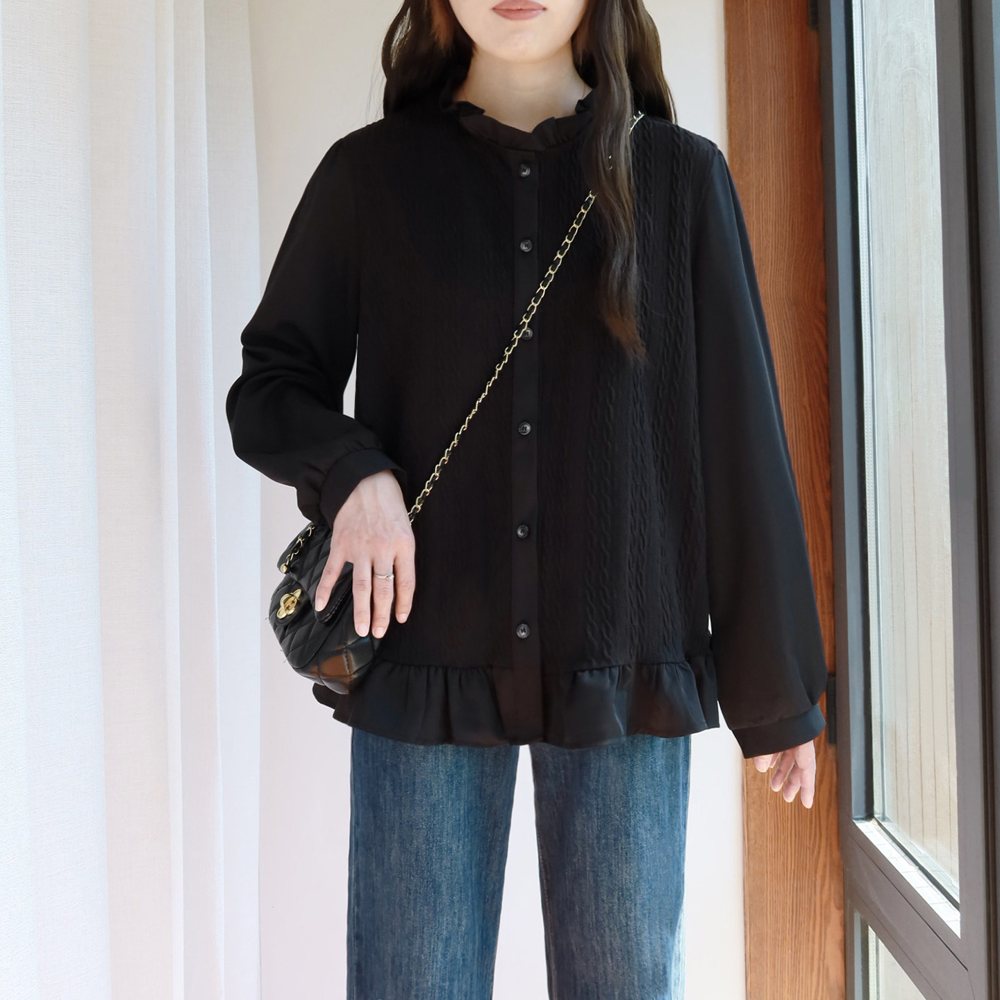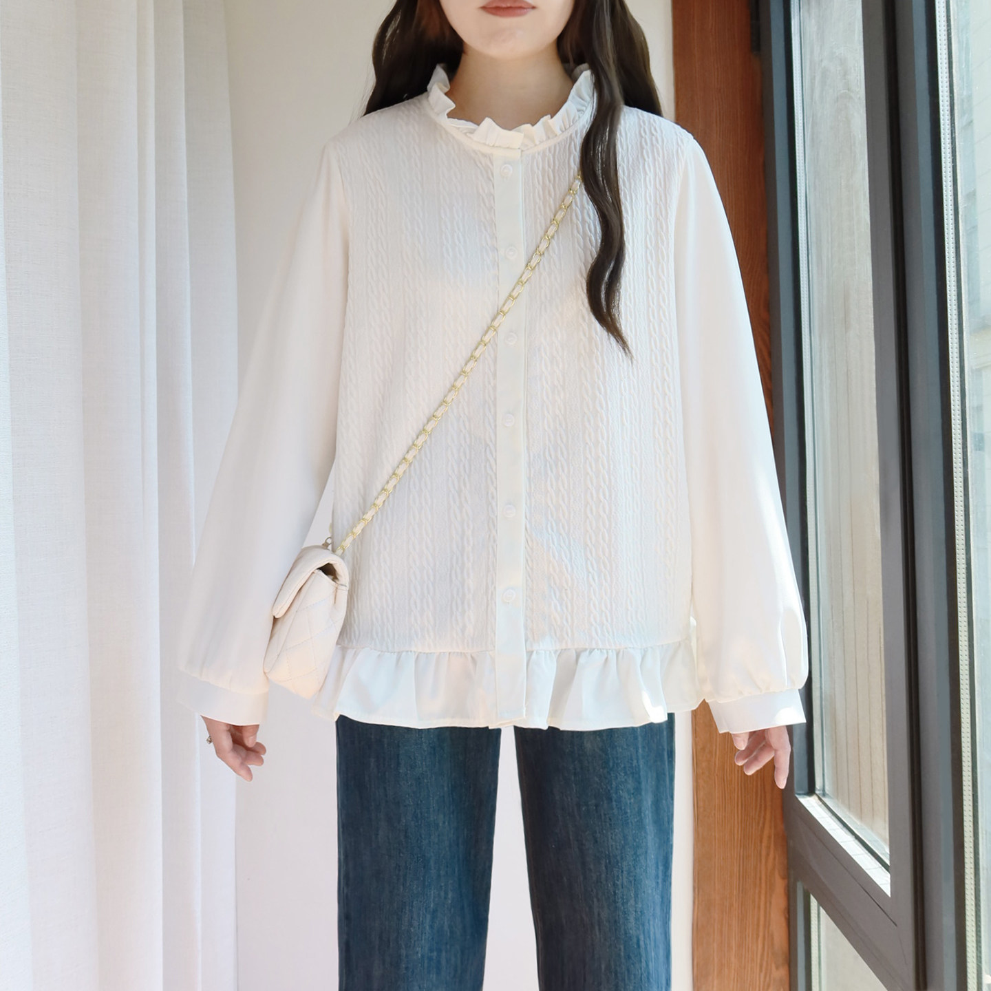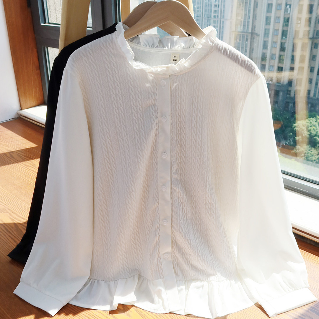 法式 女200斤胖mm秋装 木耳边花边领宽松胖妹妹上衣 弹力衬衫 大码