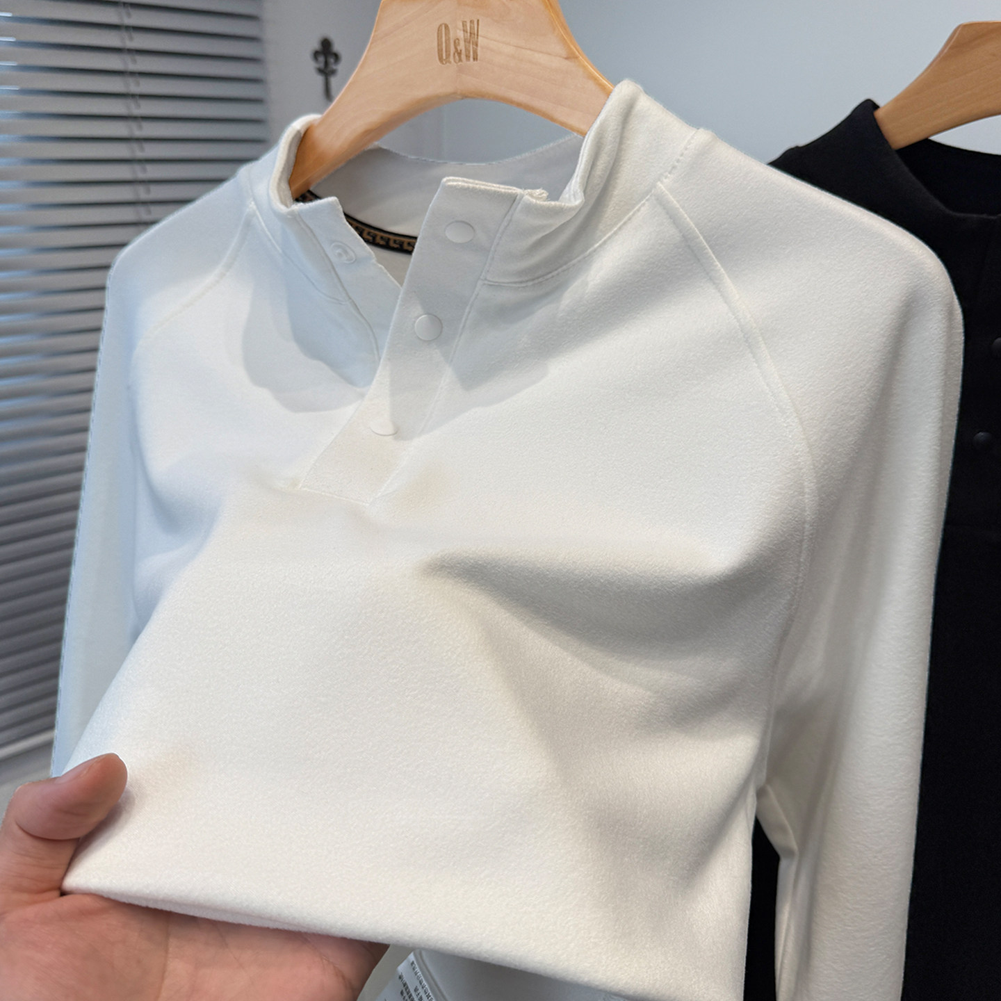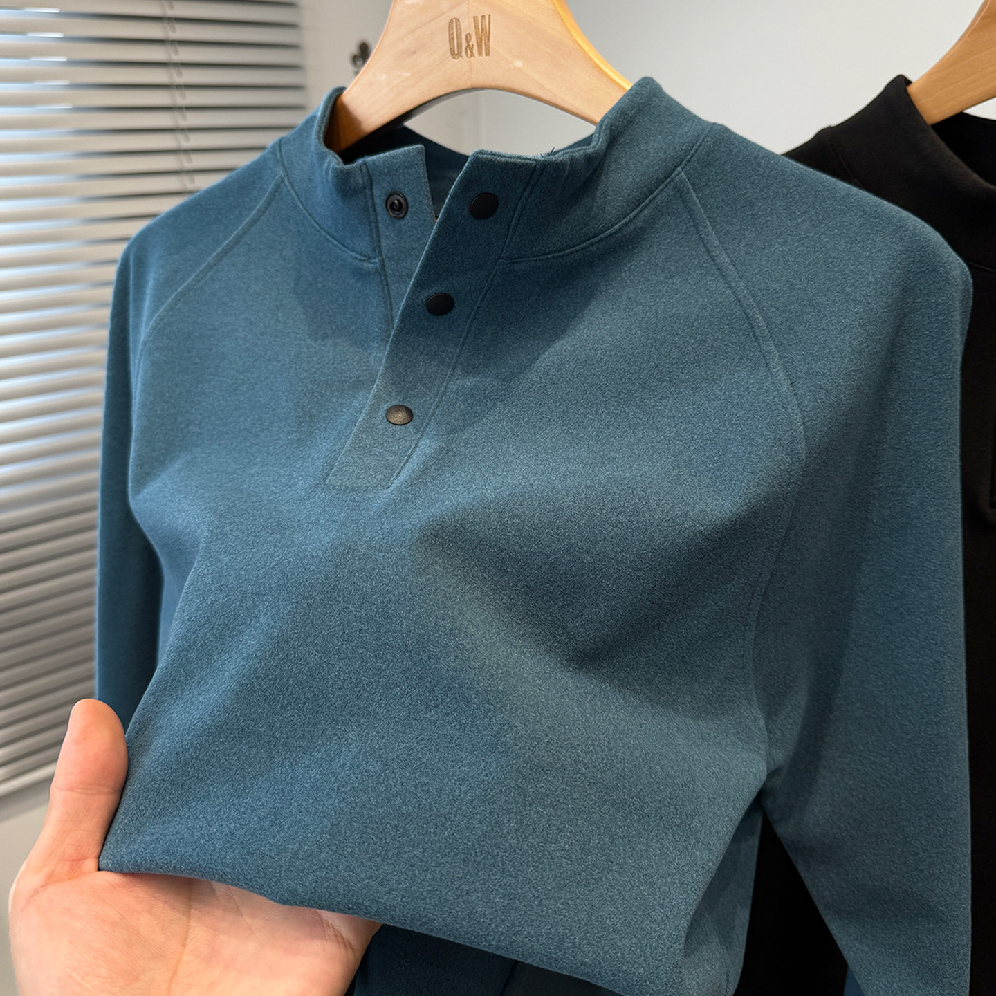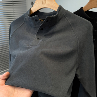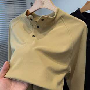 青年内搭上衣 秋冬季 磨毛德荣绒打底衫 男半高领门筒暗扣t恤男长袖