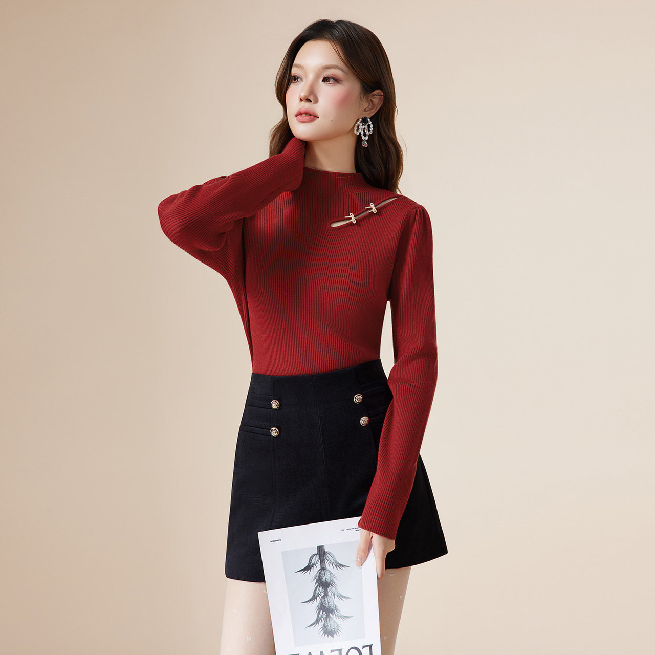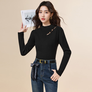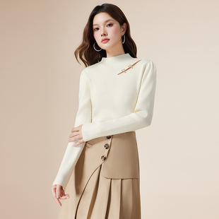 针织加绒保暖上衣 内搭毛衣洋气2025年新款 半高领打底衫 女士秋冬季