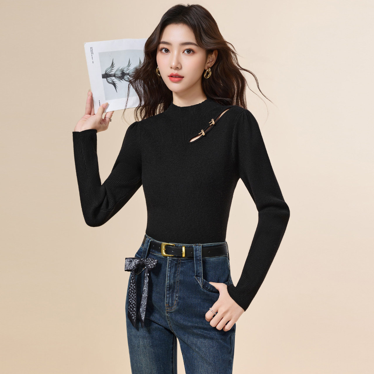 百搭长袖 女修身 毛衣秋冬 本期醉爱高领露手指针织打底衫 质感加厚