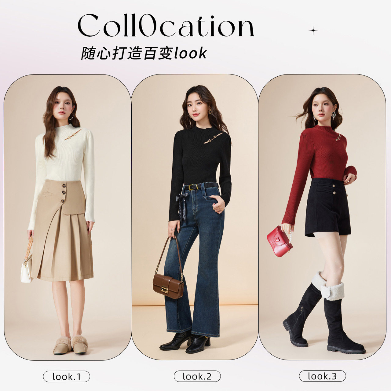 反季 女堆堆领百搭毛衣修身 清仓29元 高领羊毛衫 打底针织衫 秋季