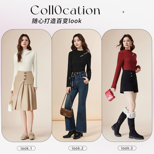 女纯羊绒毛衣针织打底衫 气质美学 100%纯山羊绒开衫 修身 秋冬 法式