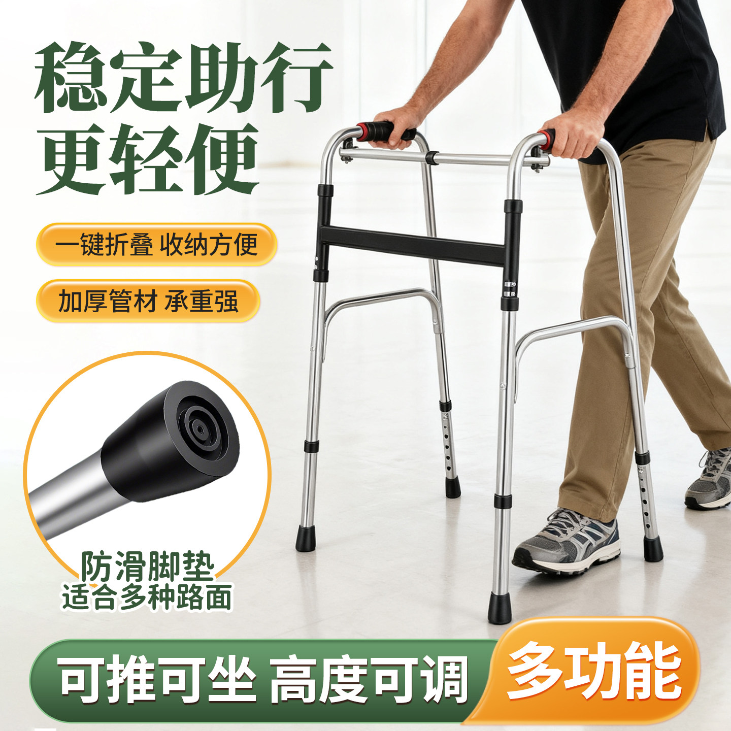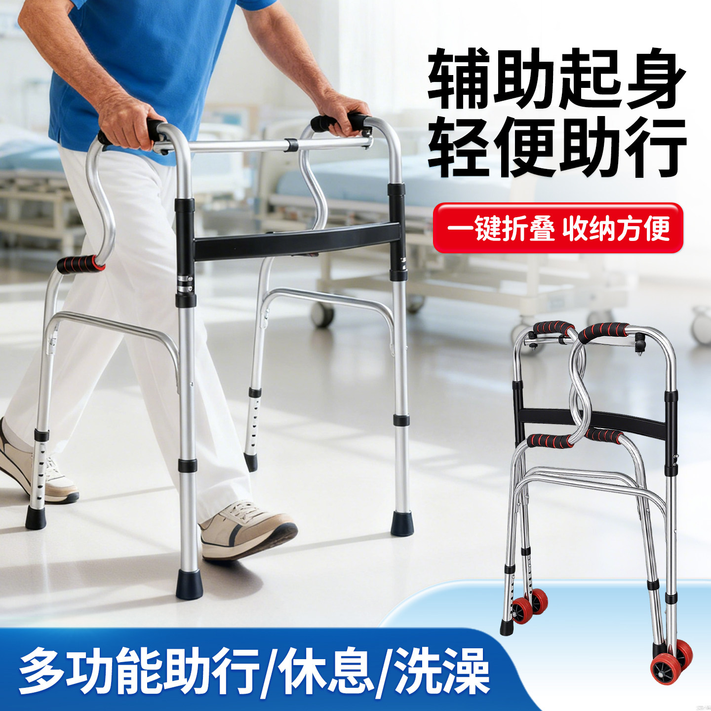 助行器辅助行走器可坐折叠带轮腿无力走路助步器骨折老人专用正品