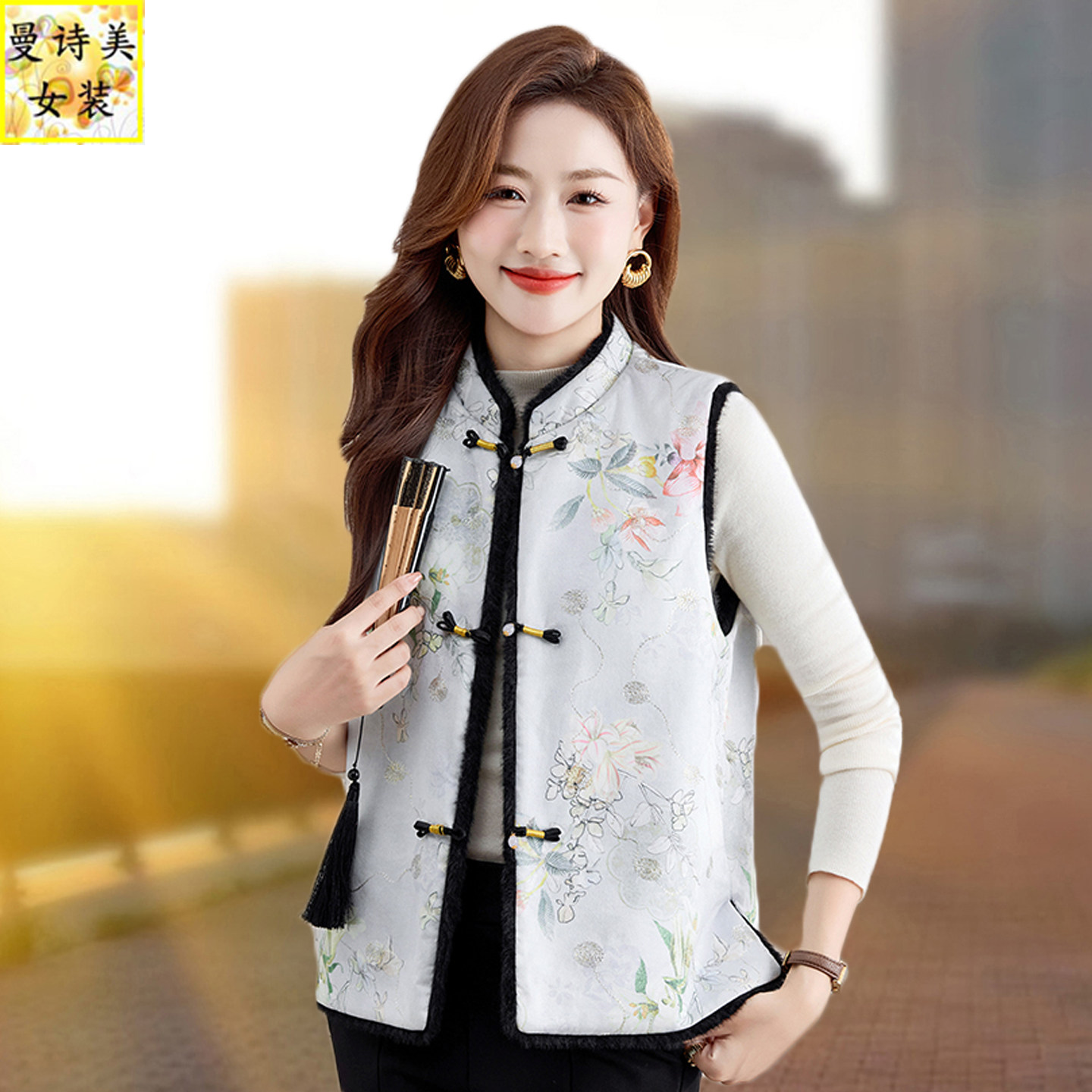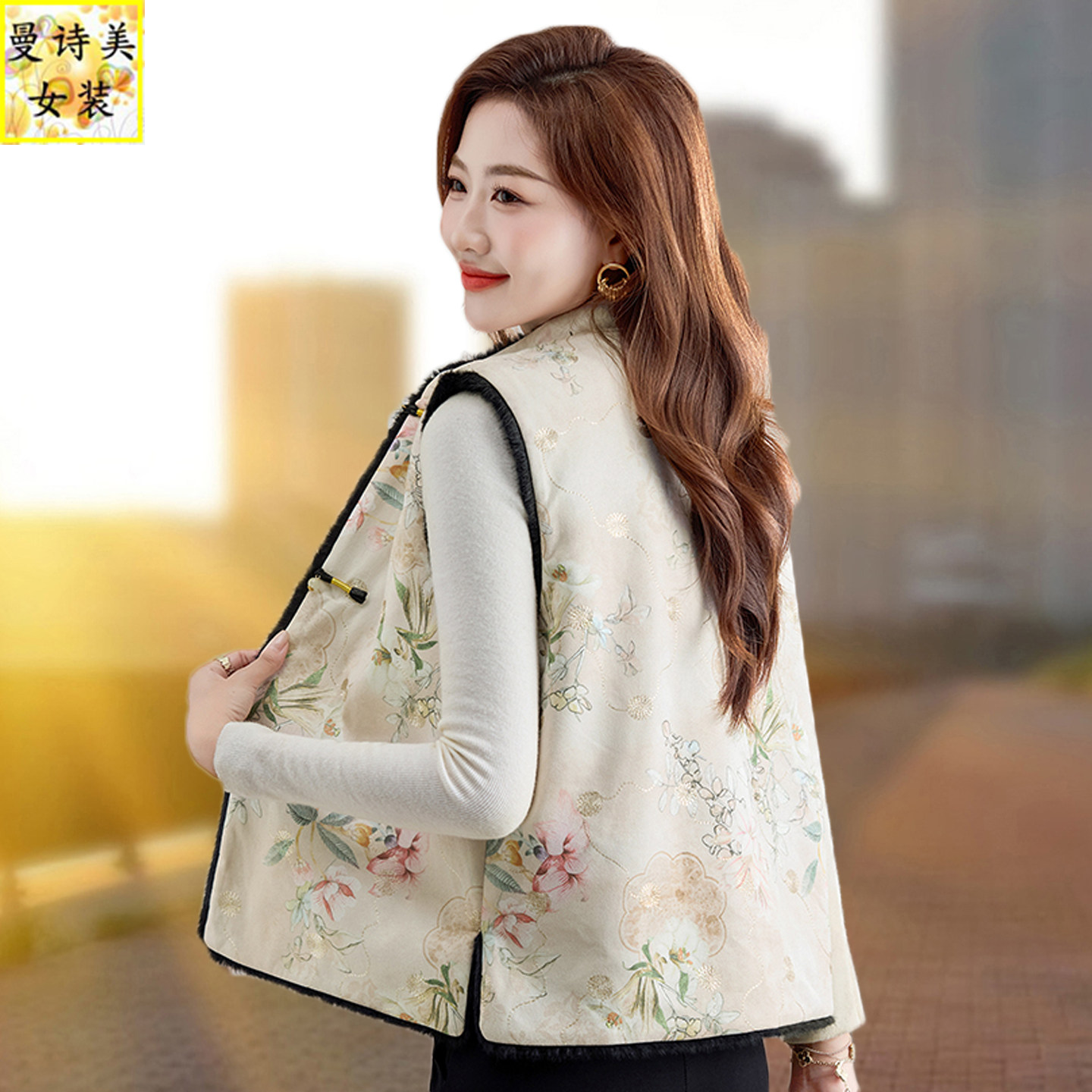新中式 加绒气质双面穿秋冬坎肩上衣 妈妈春秋国风马夹女士2025新款
