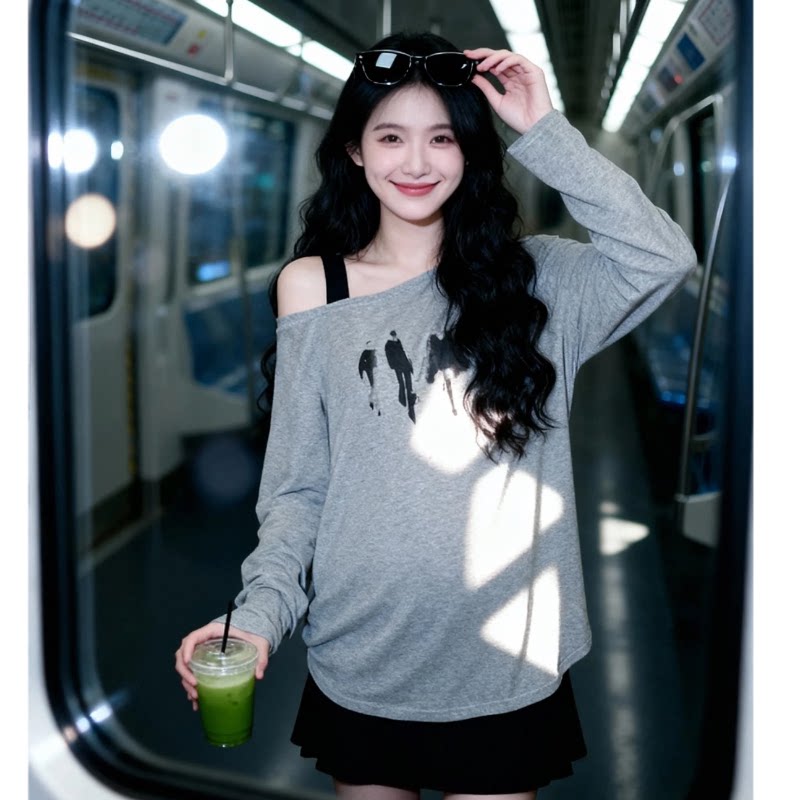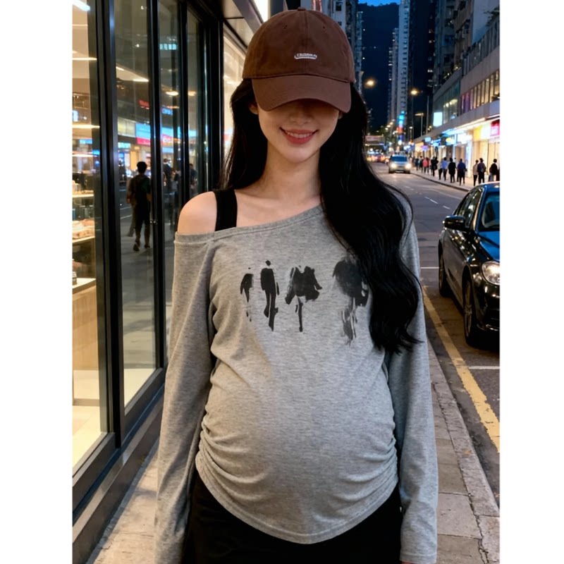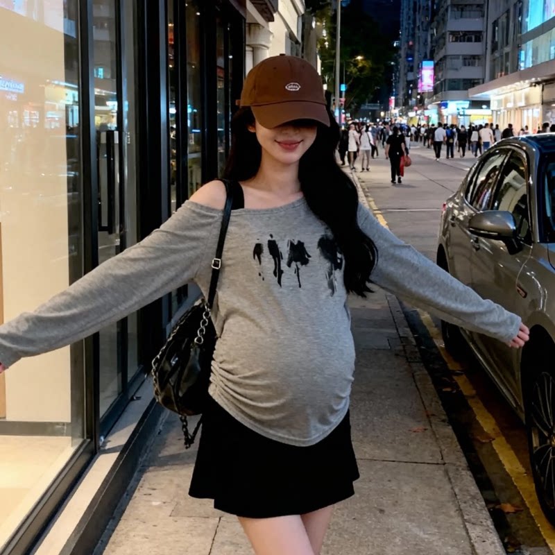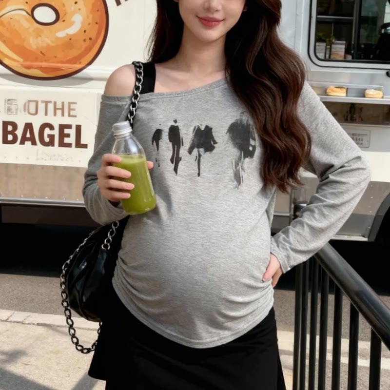 设计感小众打底衫 孕妇长袖 宽松显瘦露肩上衣时尚 韩版 T恤春秋新款