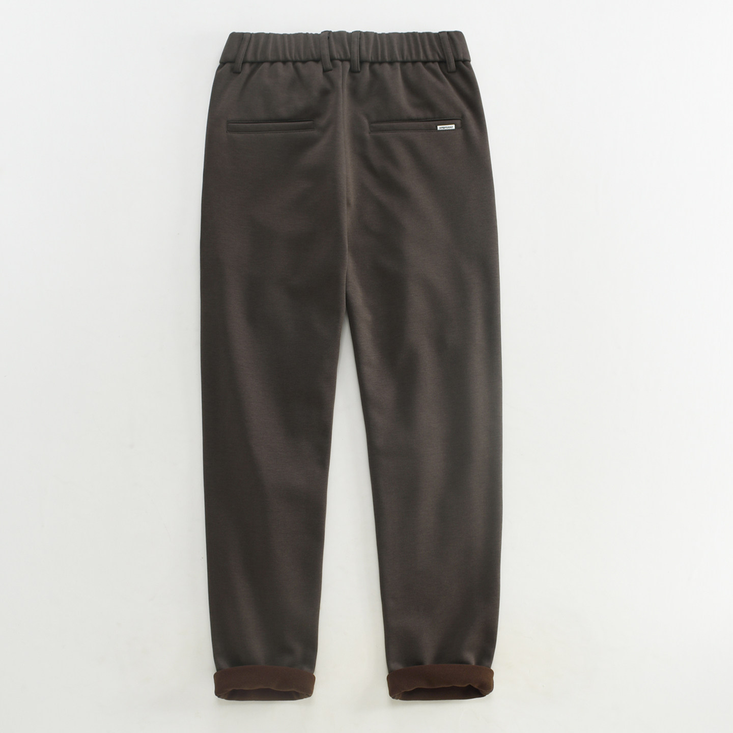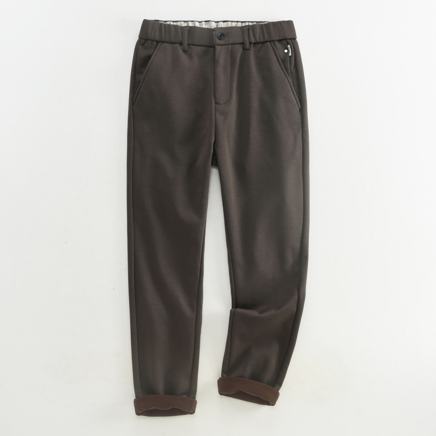 合体微锥黑色直筒裤 汉絮智感松紧腰厚款 冬季 男士 加绒通勤休闲长裤