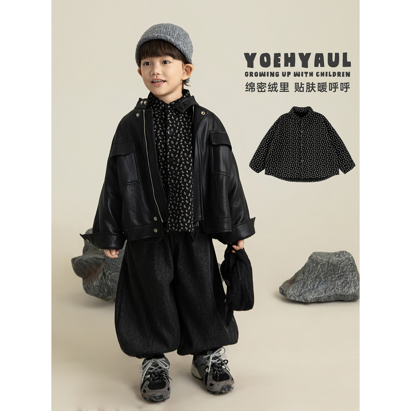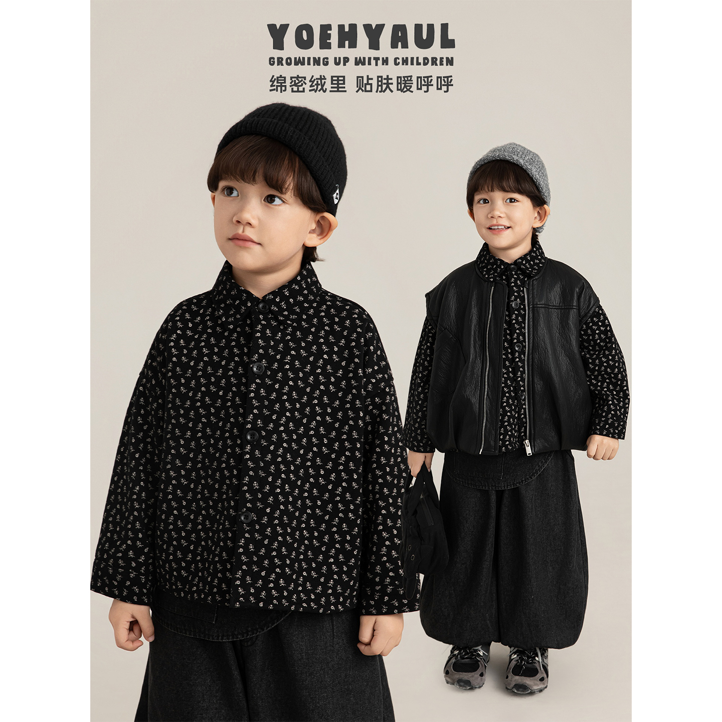百搭上衣潮 童趣可爱时尚 幼悠男童加绒加厚森系复古小碎花衬衫 冬季