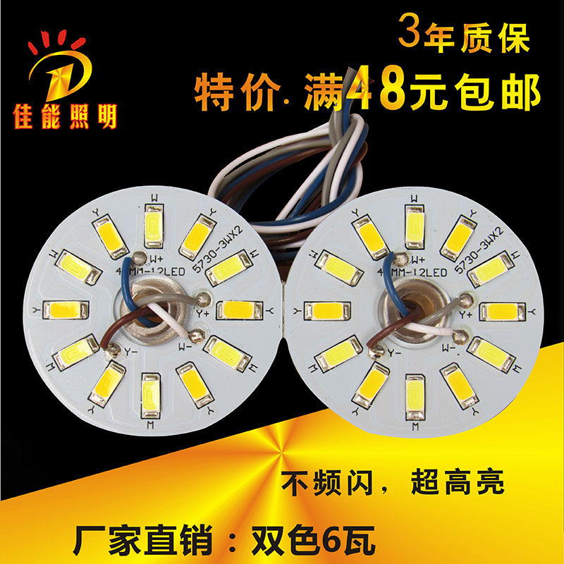 双色led灯珠吸顶灯带线改造灯板圆形超亮5730贴片3W5W水晶灯光源