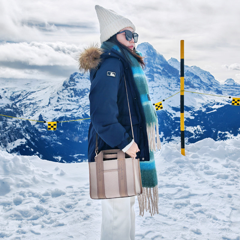 蔻驰女士帆布配皮托特单肩斜挎手提包 COACH 自营