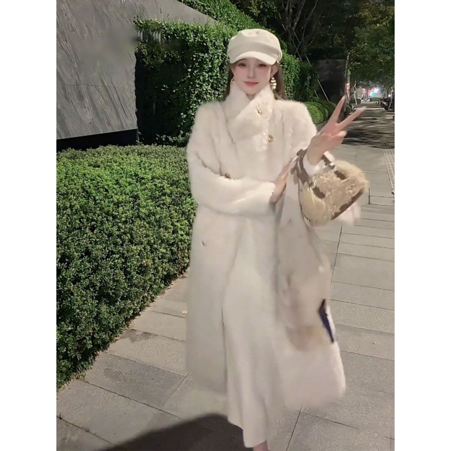 立领显瘦保暖皮草大衣 长款 大码 胖mm温柔风双排扣羊羔毛外套女冬季