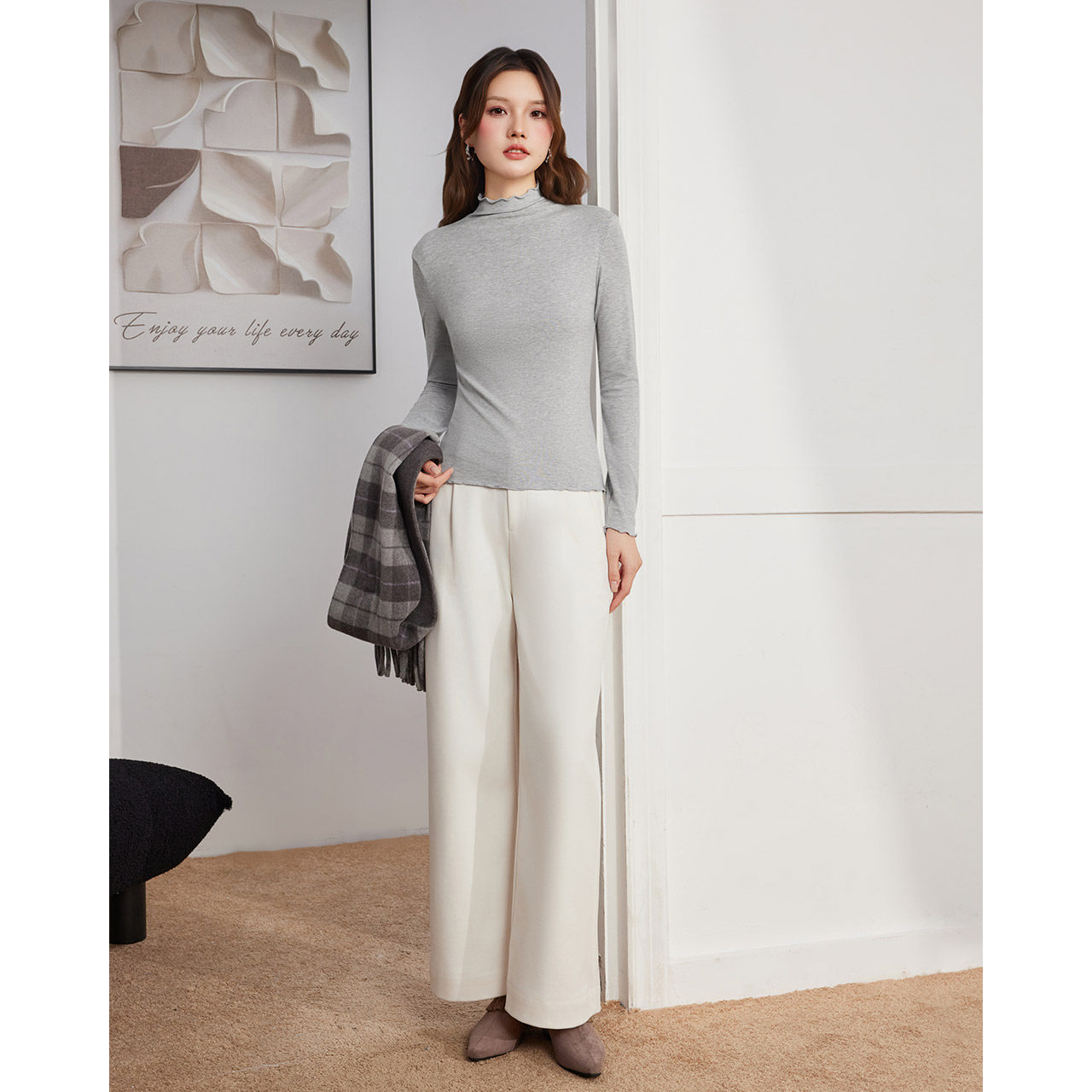 简约时尚 IEF 韩版 新款 纯色通勤气质百搭高领打底衣 爱依服2025秋季