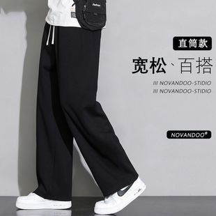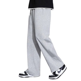 百搭运动休闲裤 男潮牌直筒宽松垂感加绒加厚长裤 子 灰色卫裤 秋冬季