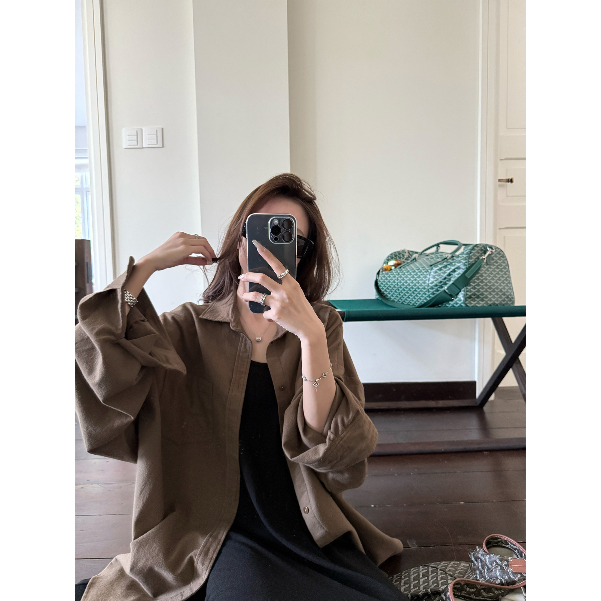 CHER 外套女秋季 加厚柔软磨毛衬衫 休闲衬衫 超大宽松显瘦长袖 LIL
