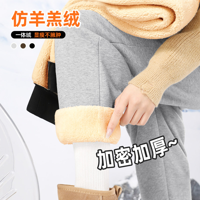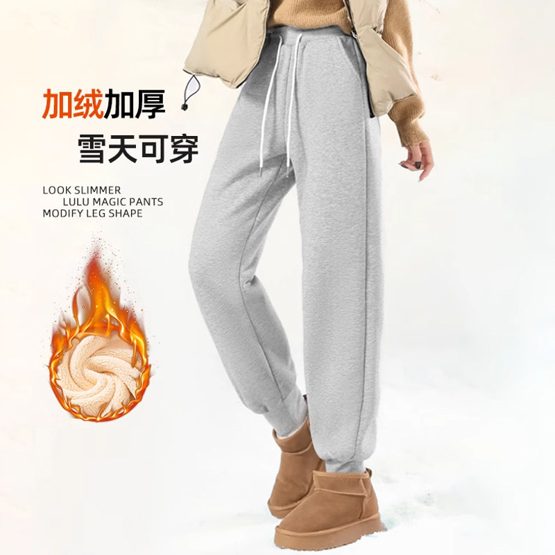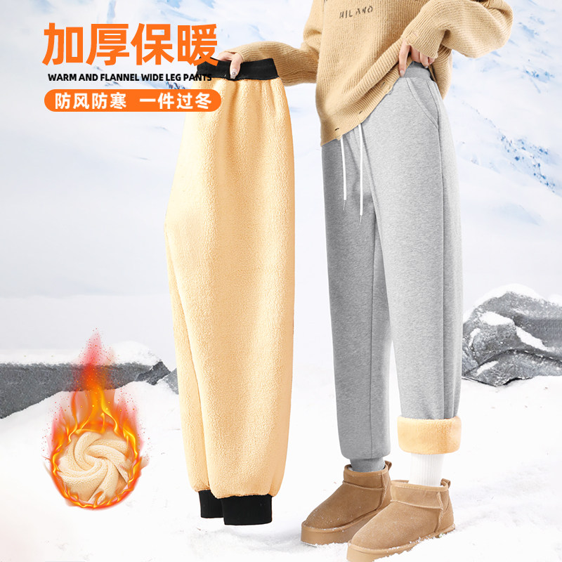 学生仿羊羔绒卫裤 雪中飞加绒加厚裤 束脚运动裤 2025新款 子女冬季